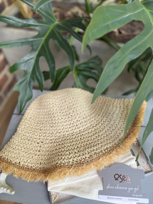 Bucket hat en fique con bordo en flecos