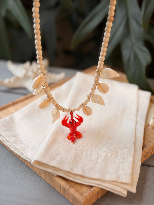 Collar piedra fósil, conchas y dije cangrejo