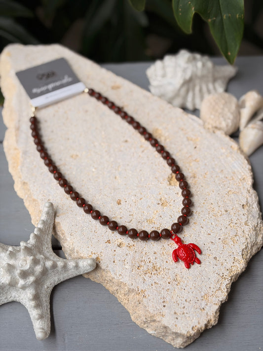 Collar bolas café dije tortuga roja