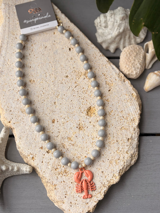 Collar bolas medianas y langosta esmaltada