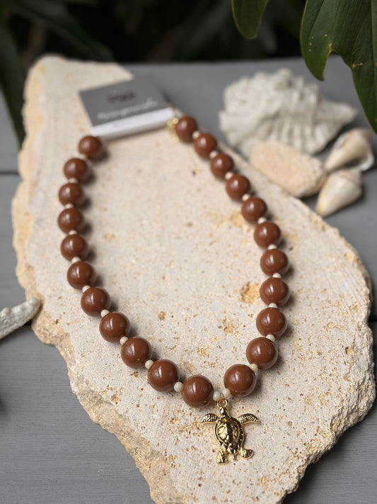 Collar bolas café dije tortuga de mar