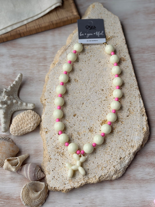 Collar bolas rosadas y mostacilla dije cangrejo