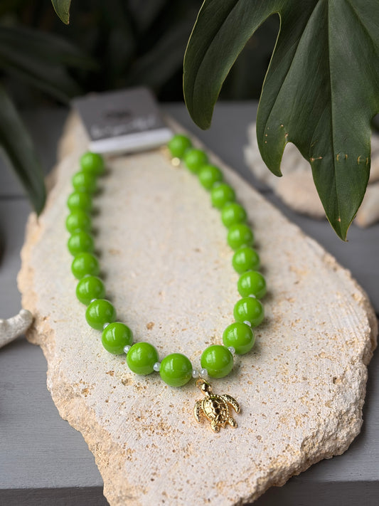 Collar bolas verde dije tortuga de mar