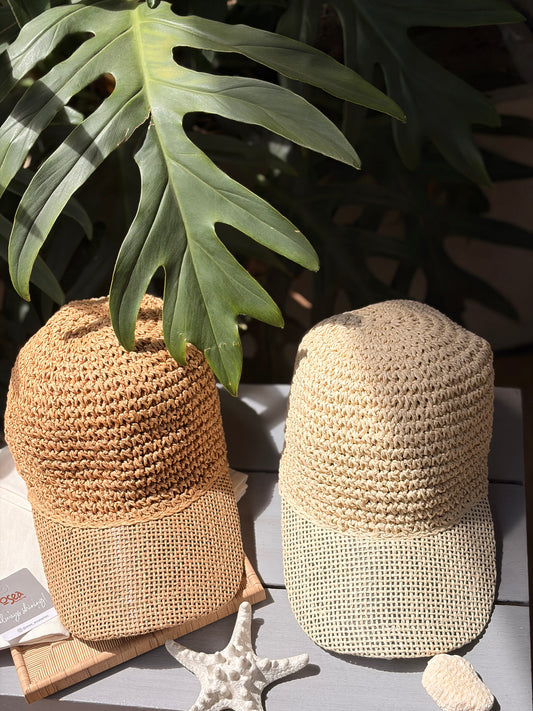 Gorra en fique sintético con moño de tela