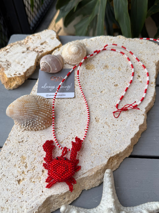Collar bolas rosadas dije cangrejo rojo