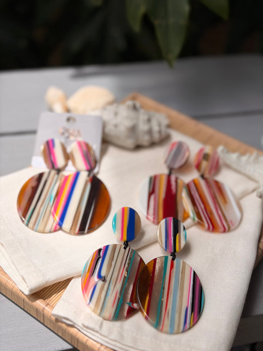 Aretes rayas colores en resina con piedra