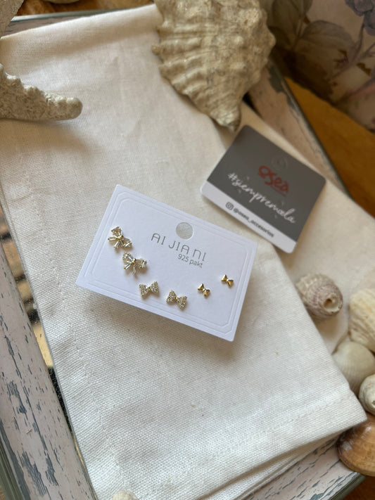 Set dúo corazones plateados + aretes diseño con baño de oro