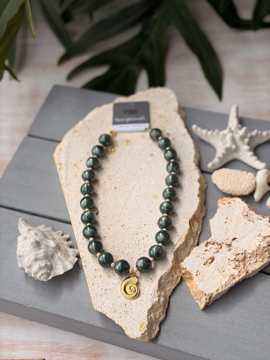 Collar bolas vinotinto efecto nacar dije cangrejo