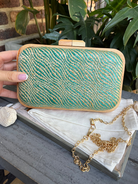 Cartera con borde en madera