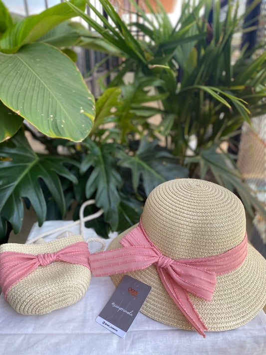 Set sombrero y bolso para niña cinta moño