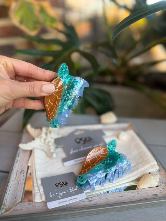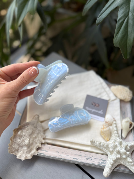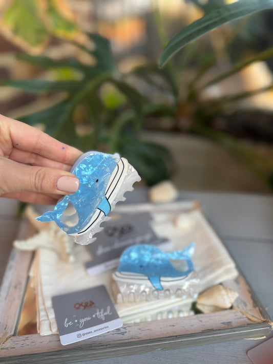 caimán nácar pez azul grande hairclip