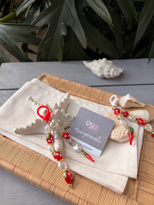 Llavero fresas corazones