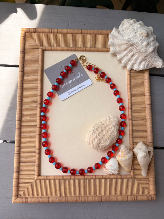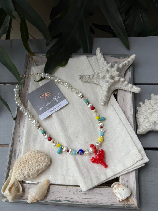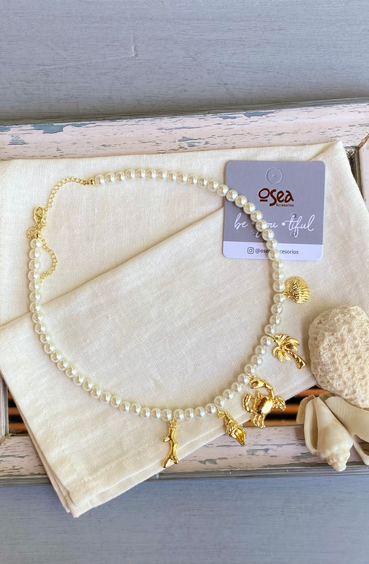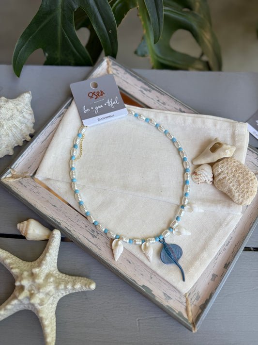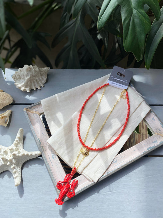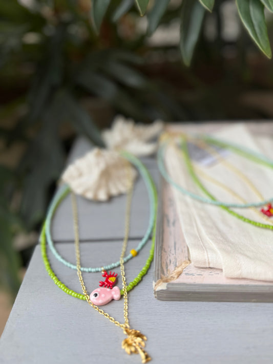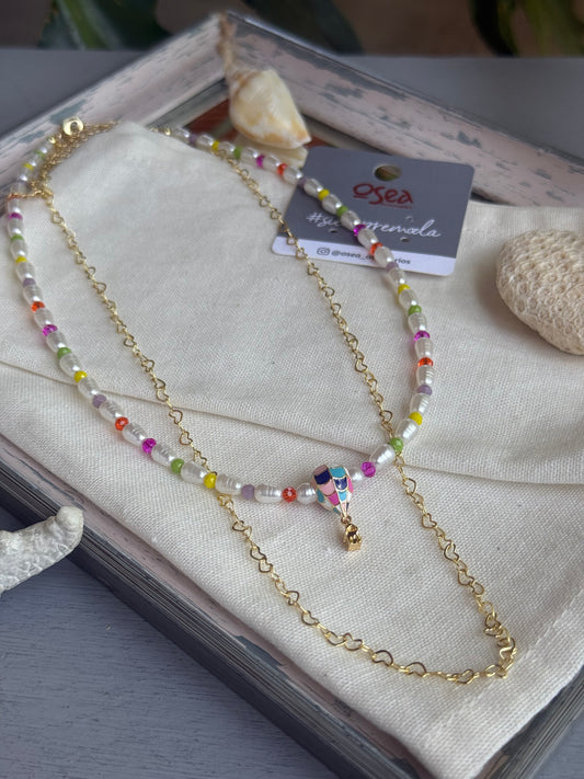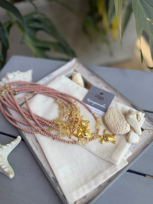 Collar doble rosado mostacillas y piedras dije mantarraya