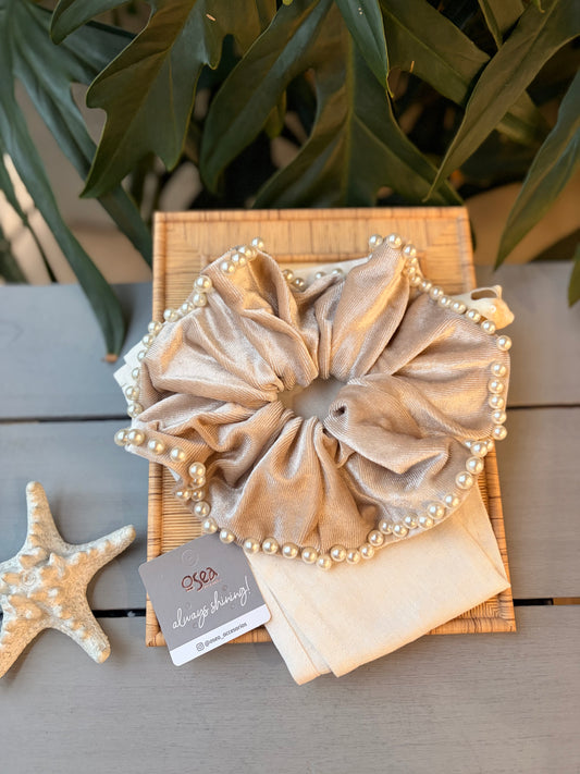 Moño colero satinado con perlas