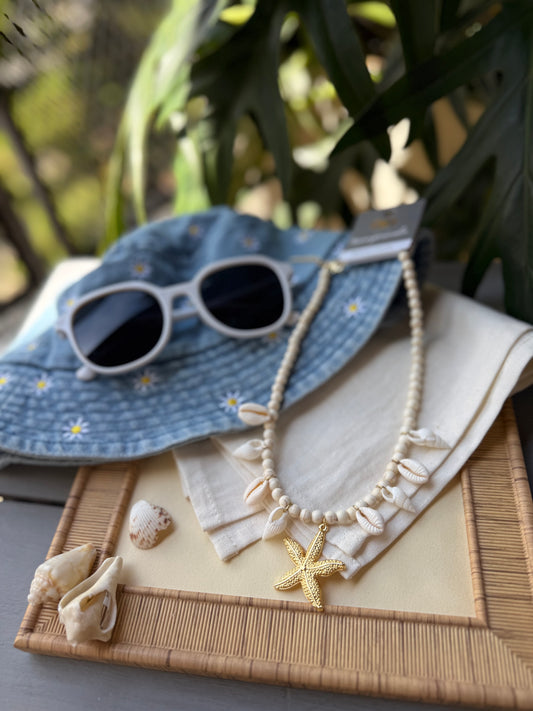 Collar doble rodinado y perlas dijes de playa