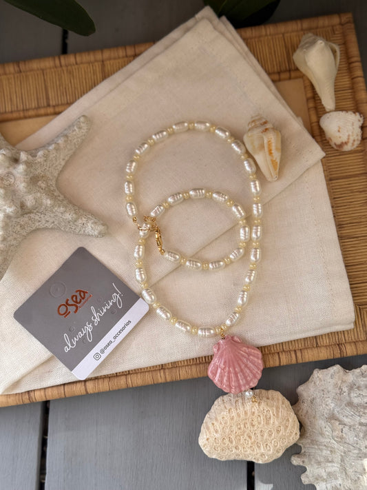 Collar perlas dije concha pastel