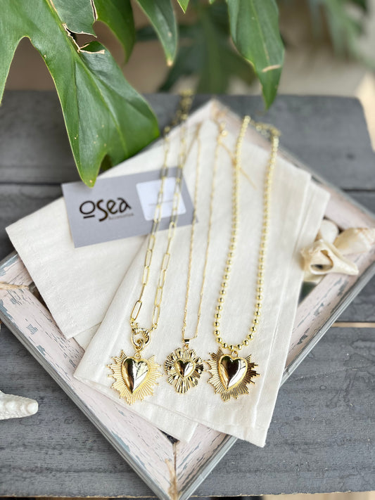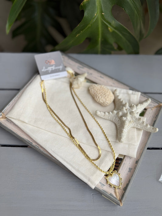 Set dúo corazones plateados + aretes diseño con baño de oro