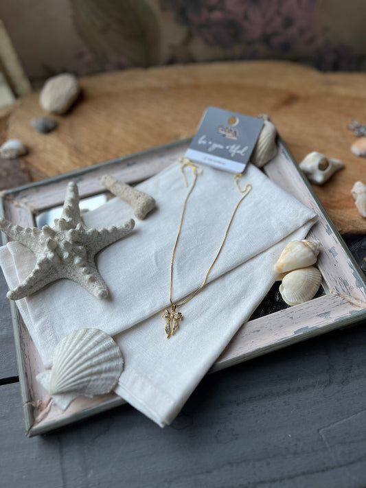 Collar doble marinero en perla plástica irregular y cadena en golfied