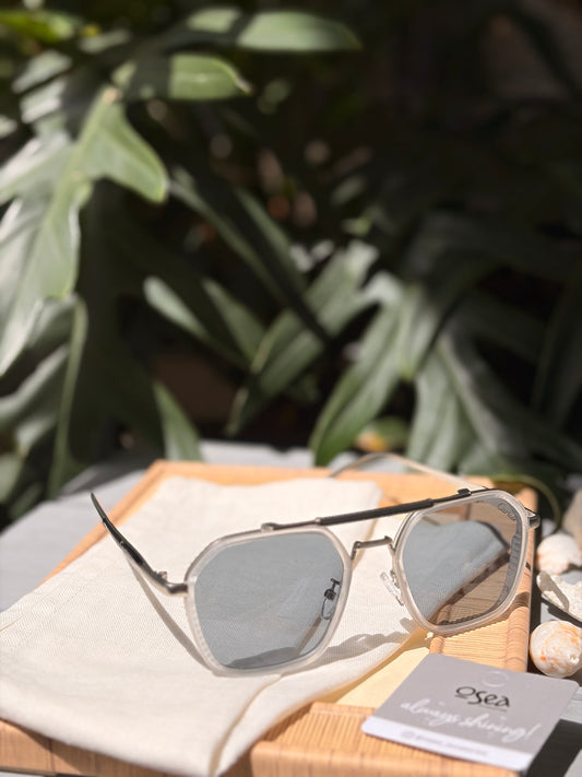 Gafas de sol con bisel plateado