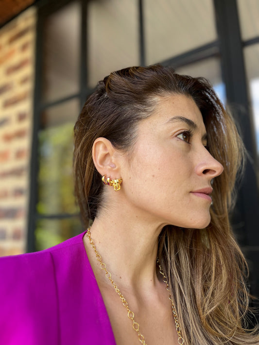 Aretes candonga en acero y dije de corazón recubierto en resina