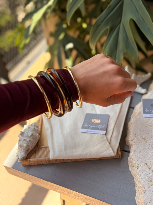 Pulseras set rodinado y resina
