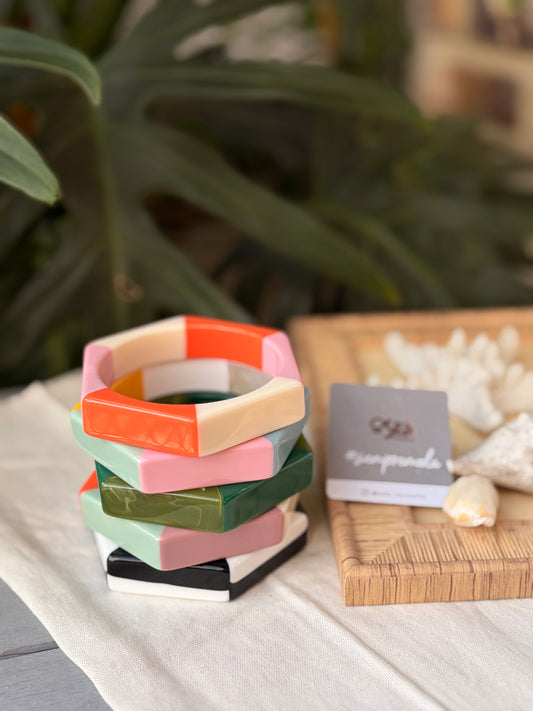 Pulsera hexagonal en resina tonos planos