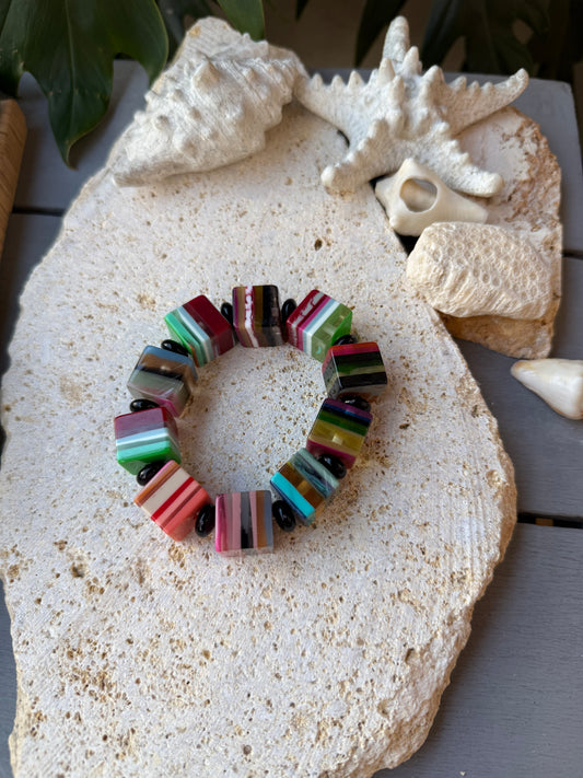 Pulsera resortada en resina cubos rayas