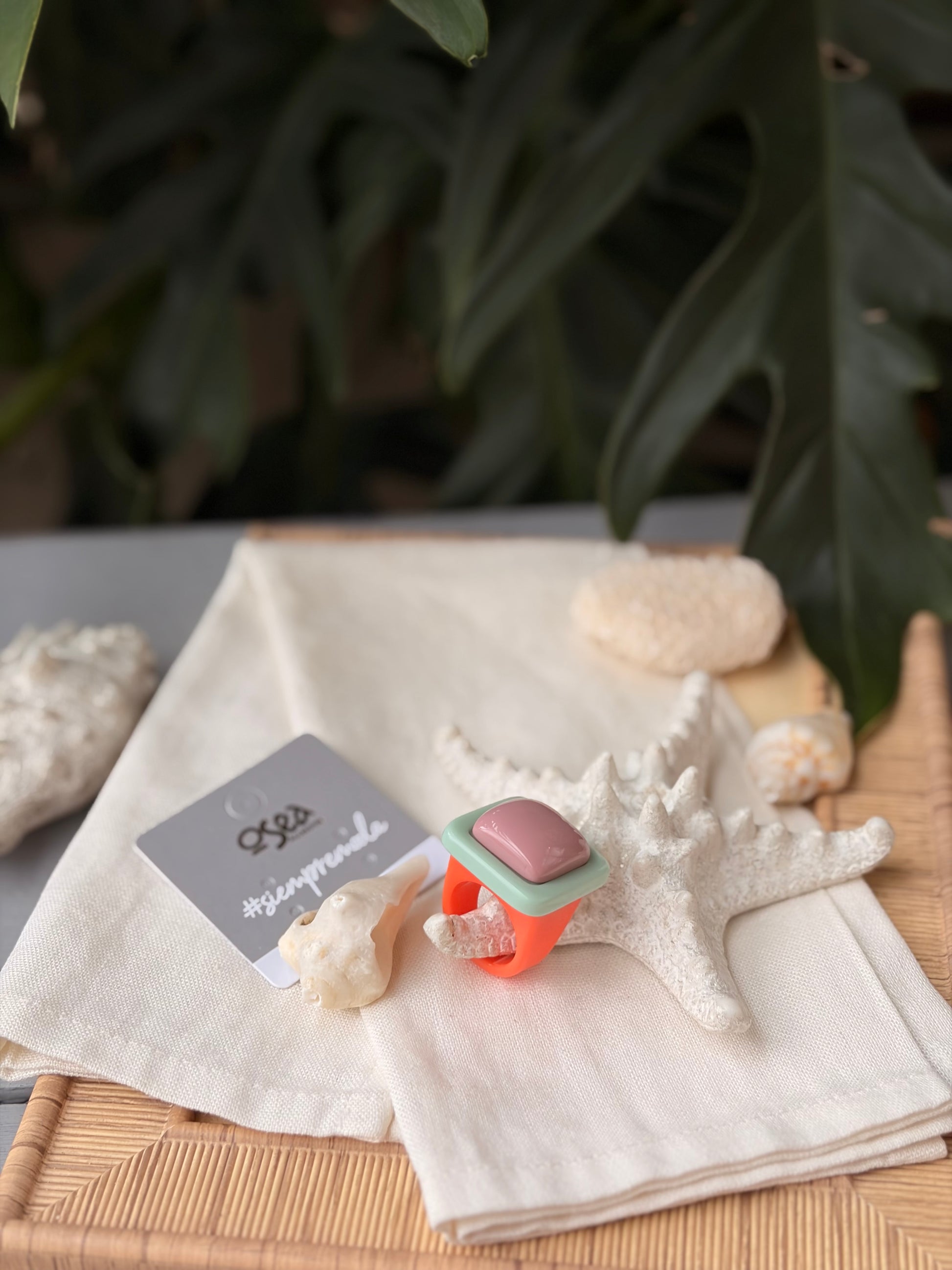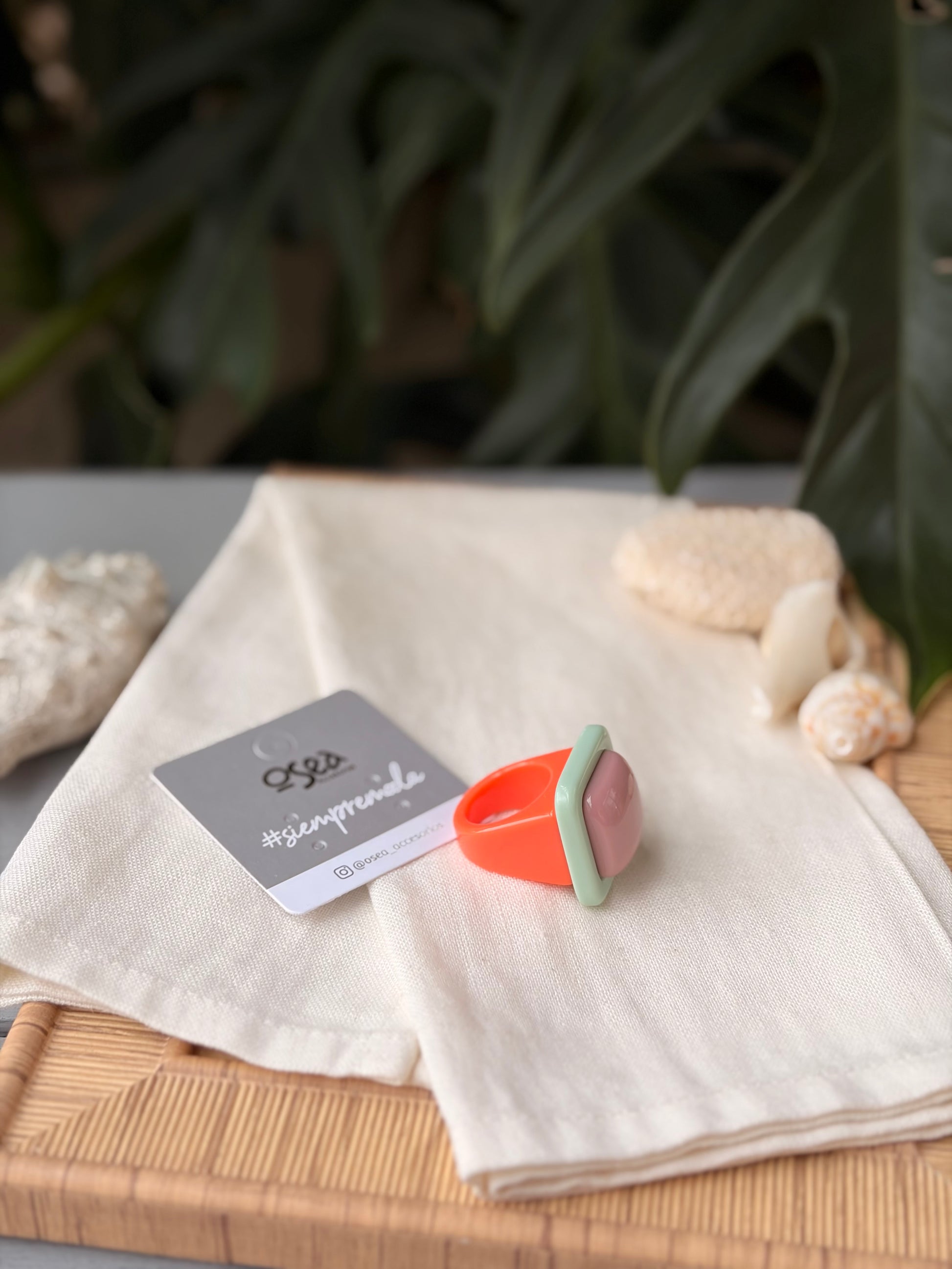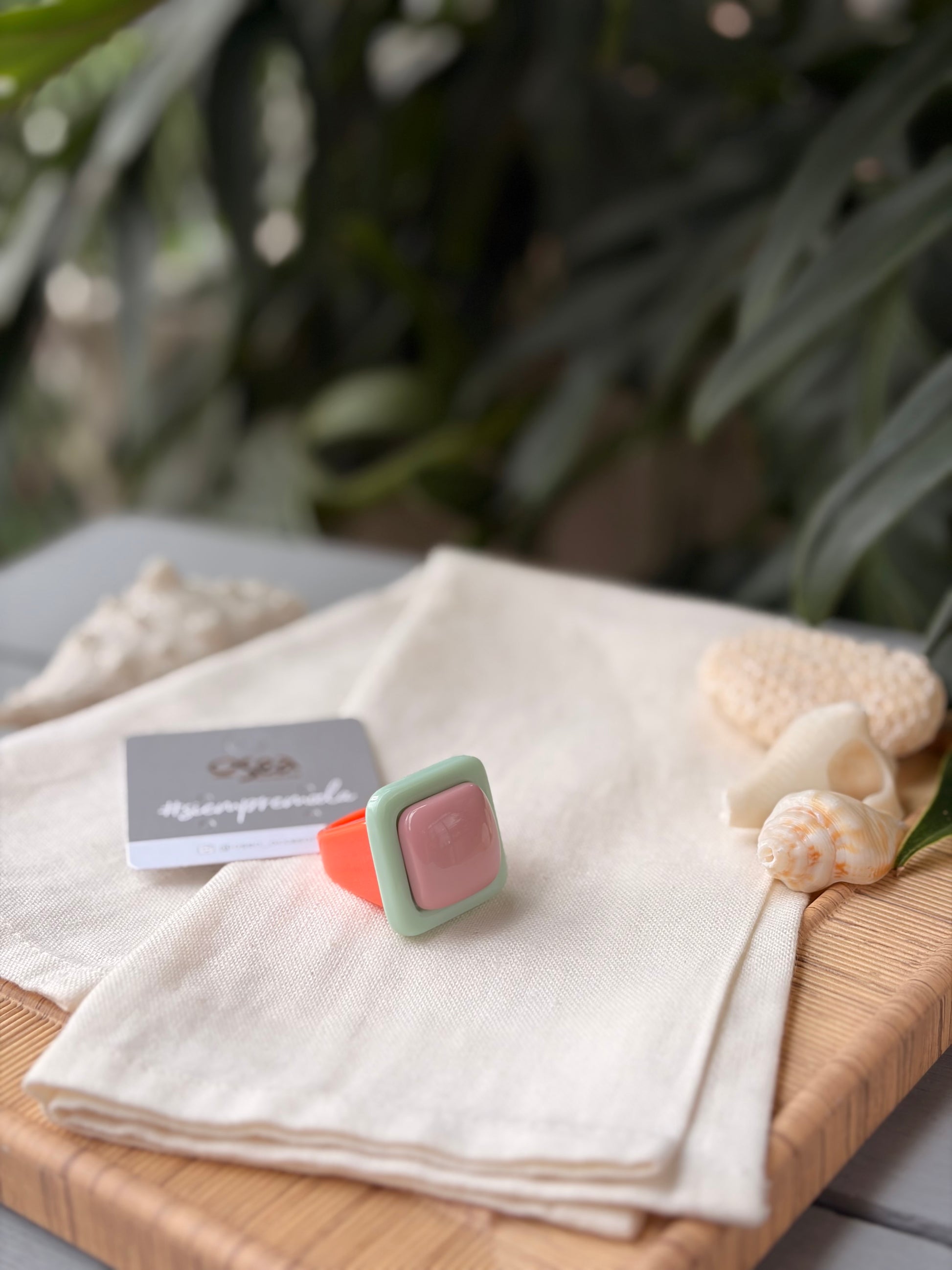 El anillo cuadrado de resina presenta un diseño único que se distingue por su forma geométrica. Este accesorio ofrece una alternativa versátil para la personalización del atuendo, permitiendo combinaciones con diversas prendas. Su material de resina garantiza durabilidad y resistencia al desgaste diario.