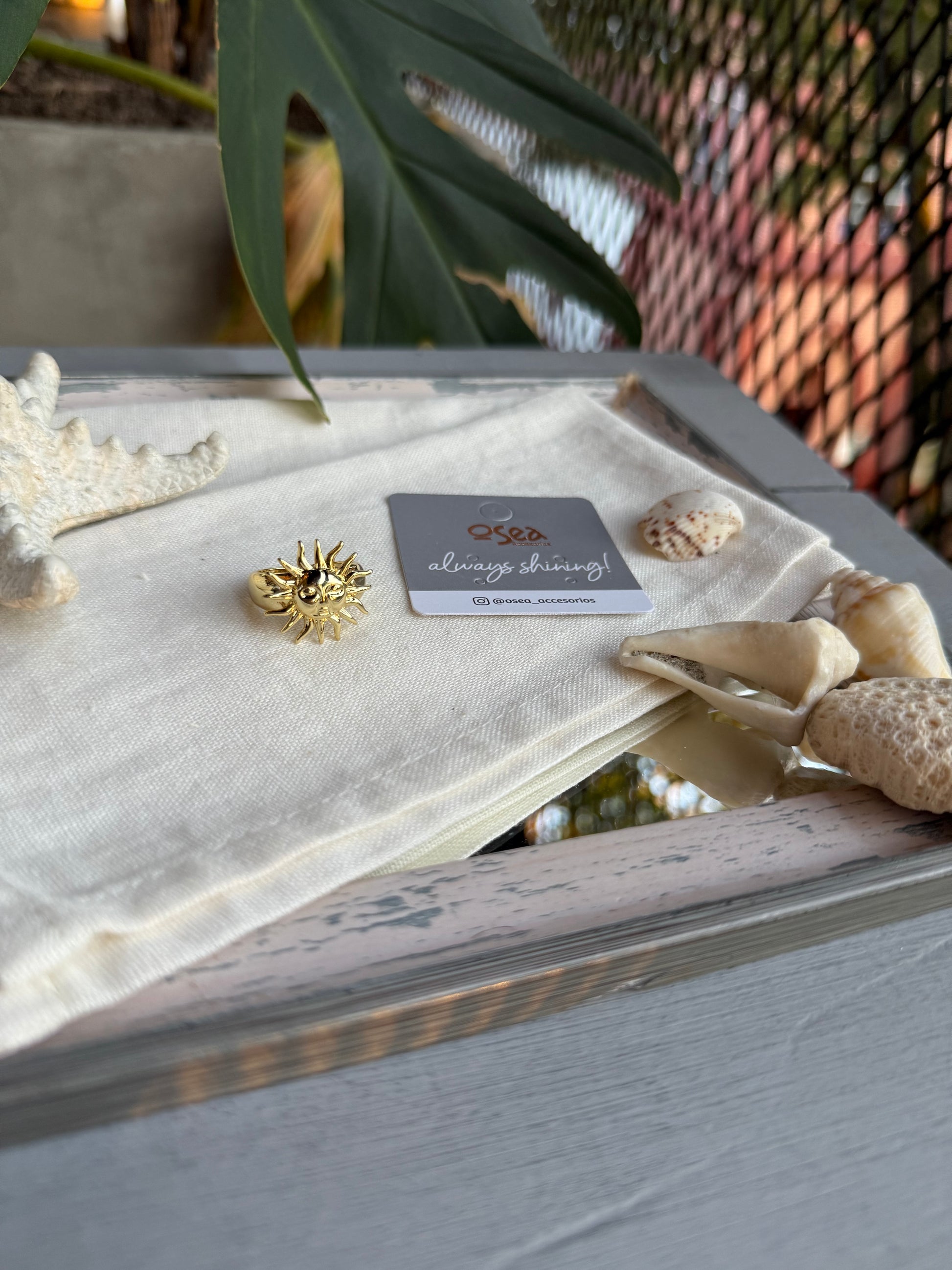 Descubre la tendencia de la temporada con nuestro anillo graduable en oro golfied con un hermoso diseño de sol. Perfecto para lucir en la playa o en cualquier ocasión, este accesorio de moda femenina te hará sentir radiante y sofisticada. ¡Haz una declaración con nuestro anillo sol graduable ahora mismo!
