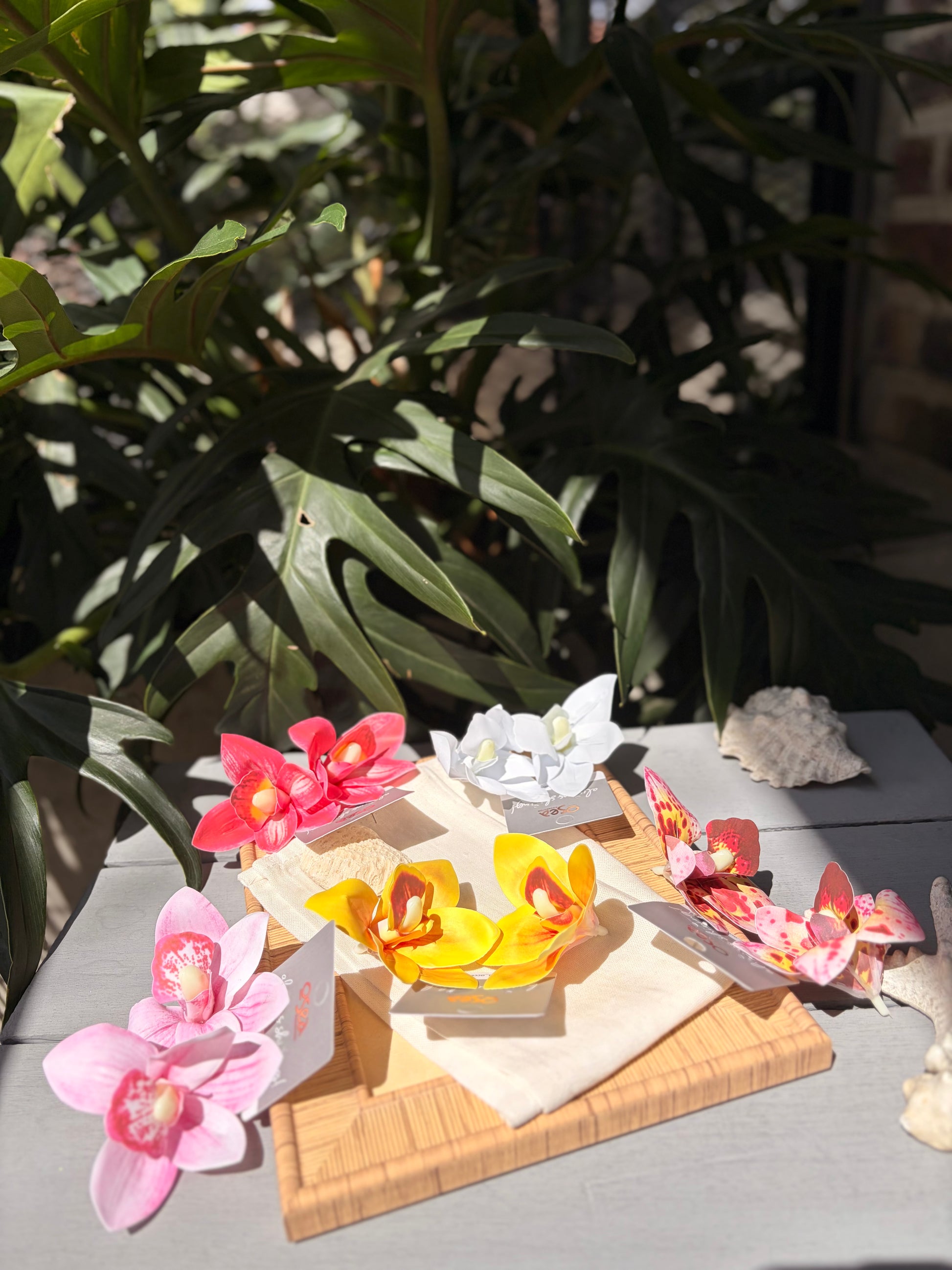Los Aretes en topo de orquídea son el complemento perfecto para llevar contigo un poco de la cultura y belleza de Colombia. Están hechos con la flor nacional de Colombia, la orquídea, y te brindan la oportunidad de llevar un pedacito de este hermoso país contigo a cualquier lugar. Descubre la elegancia y significado detrás de estos aretes.