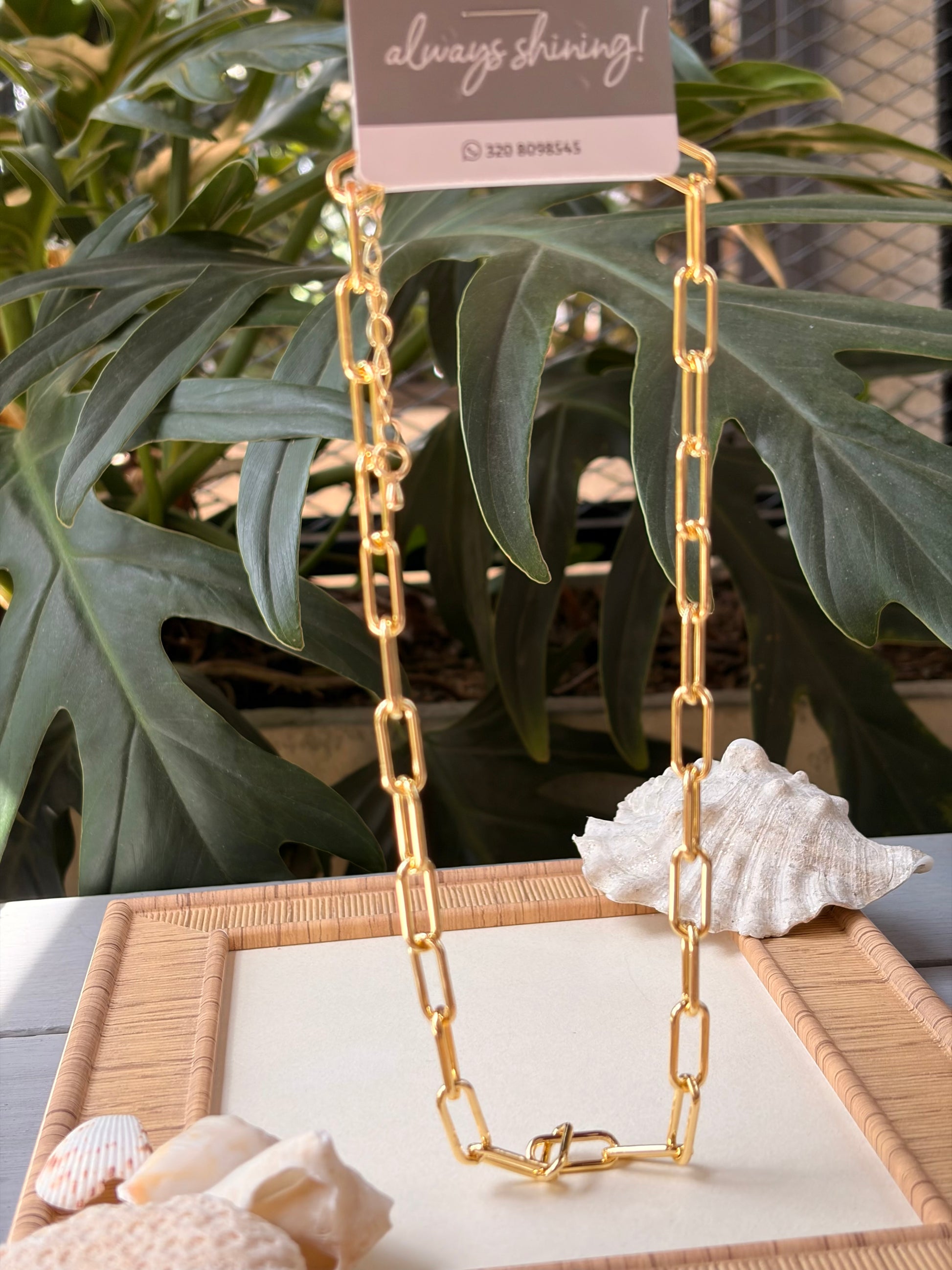 ¡Luce elegante y glamurosa con nuestra cadena rodinada de eslabones alargados! Esta cadena es perfecta para llevar tu esencia y destacar en cualquier ocasión. ¡Atrévete a brillar con estilo y sofisticación!
