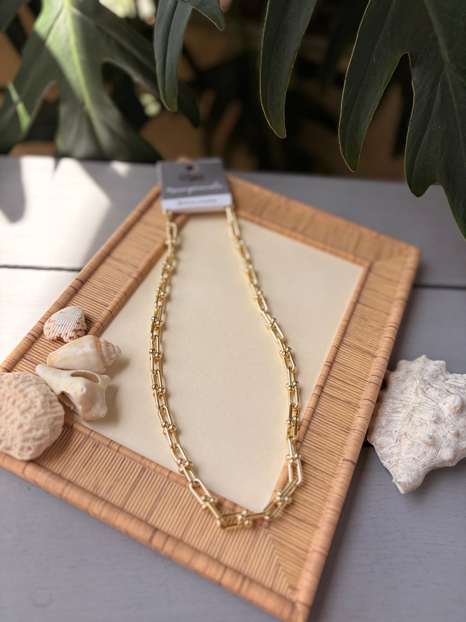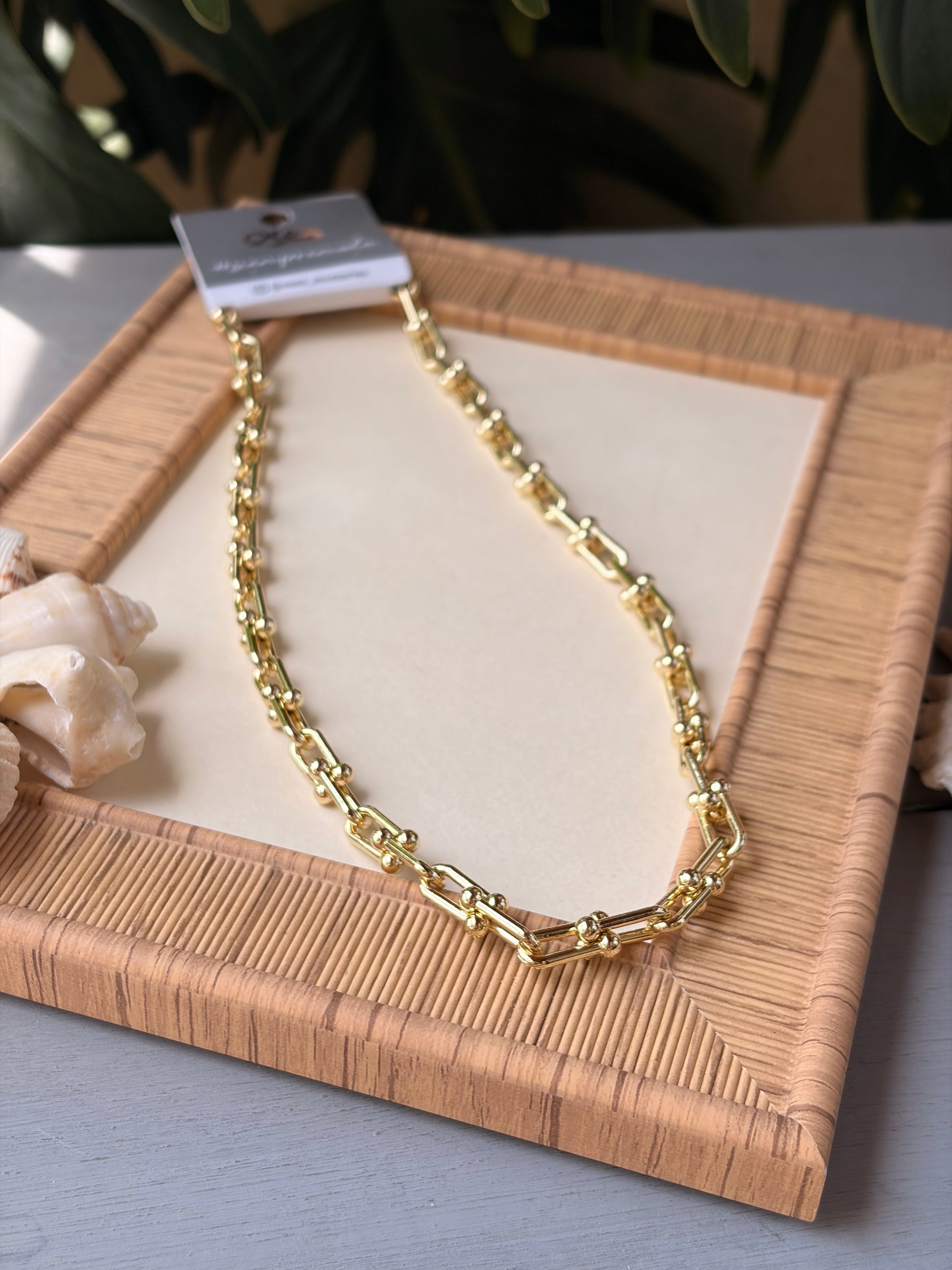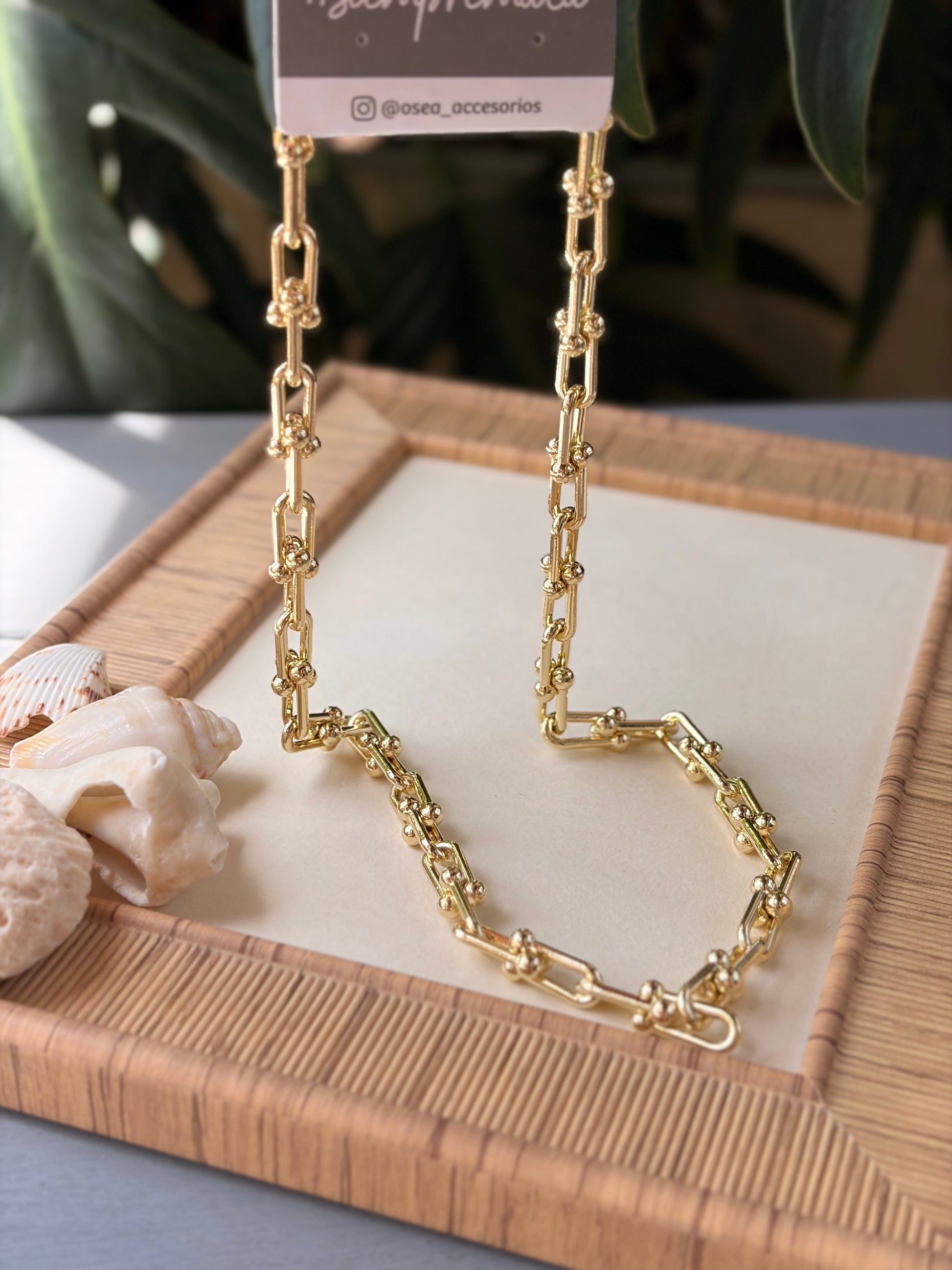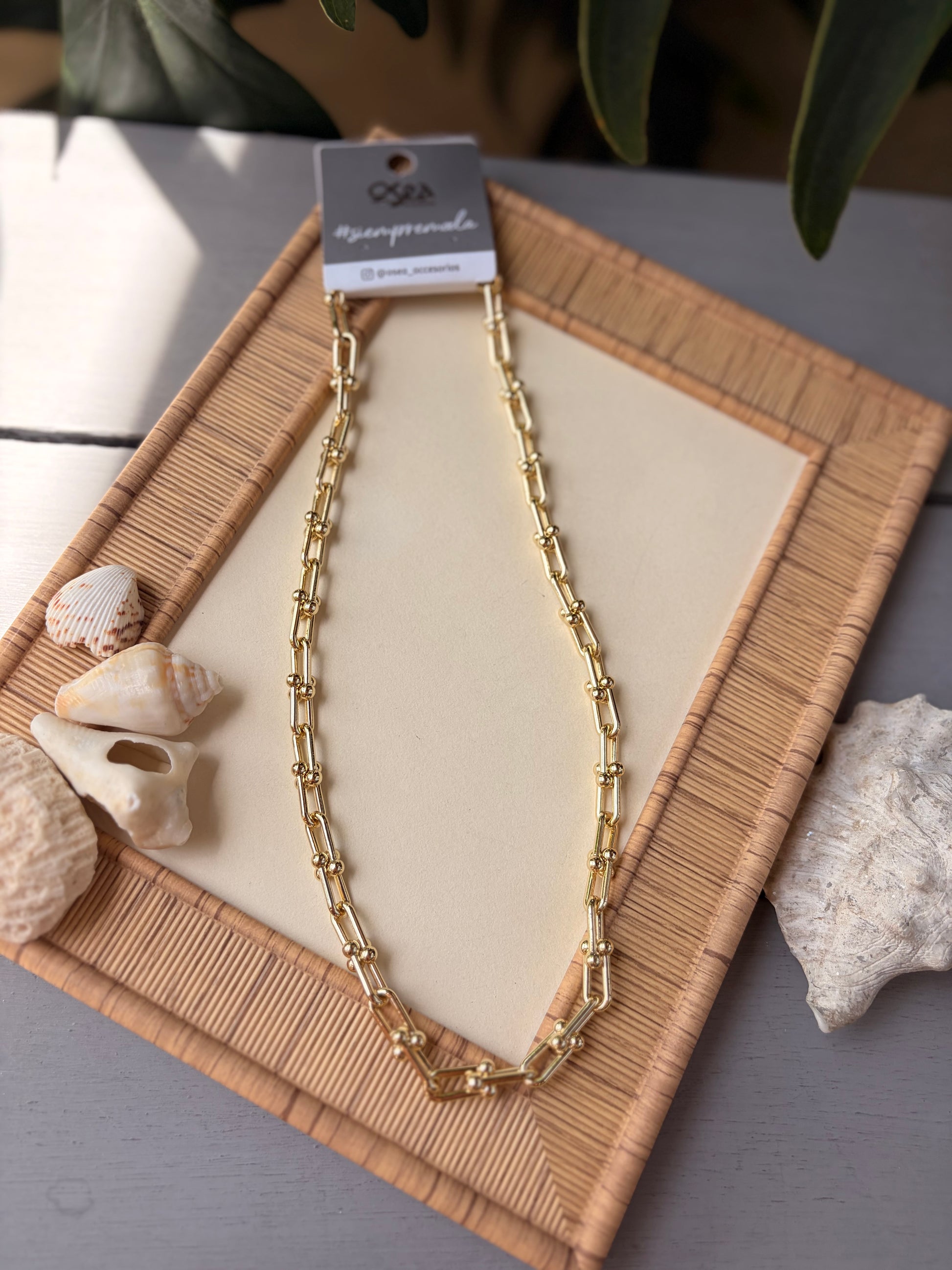 ¡Resplandece en cualquier ocasión especial con nuestra cadena rodinada de eslabones y balines! Con su brillo único, esta cadena es el complemento perfecto para lucir elegante y deslumbrar a todos a tu alrededor. ¡esta es una cadena imprescindible en tu colección de joyas!