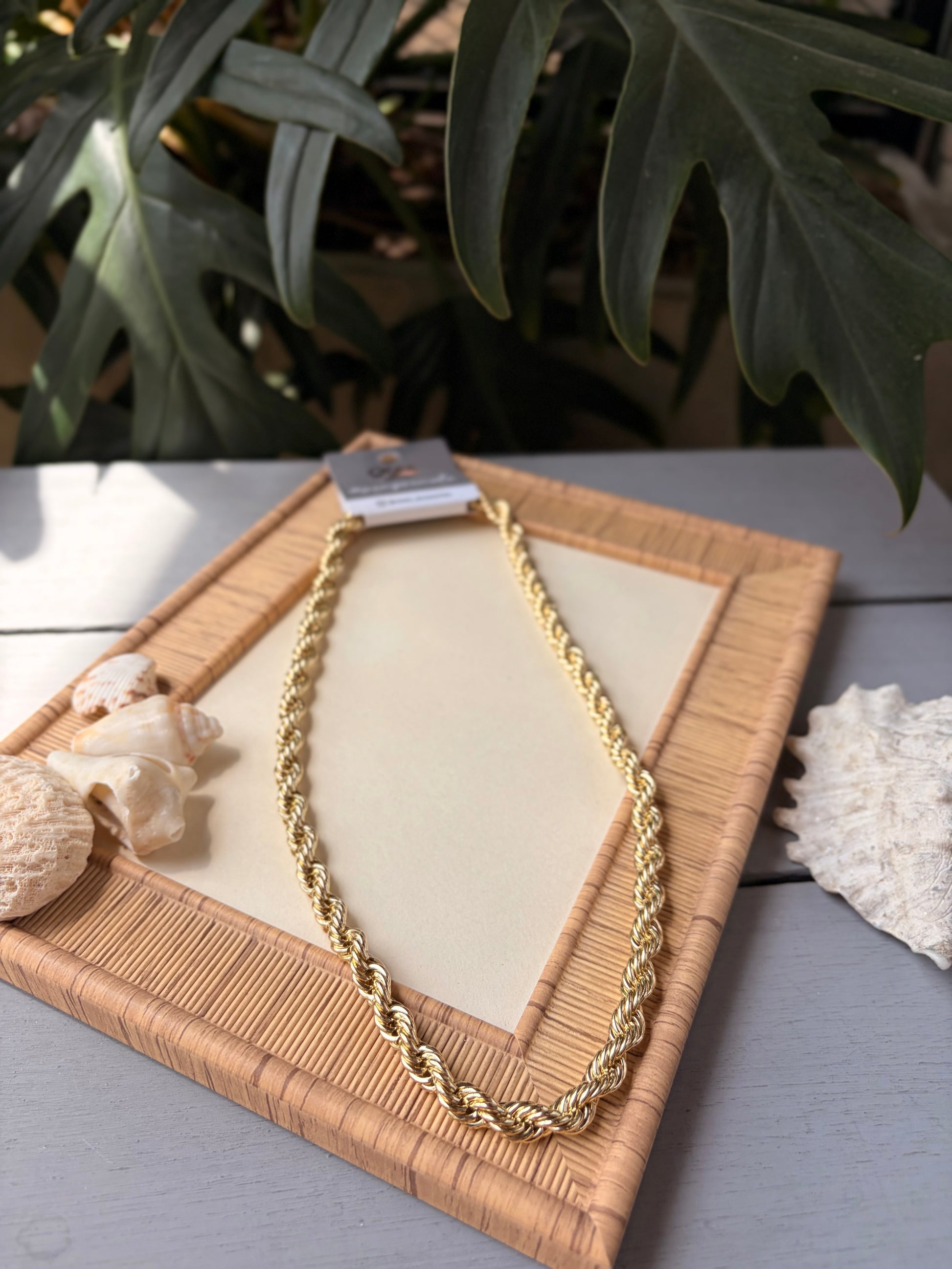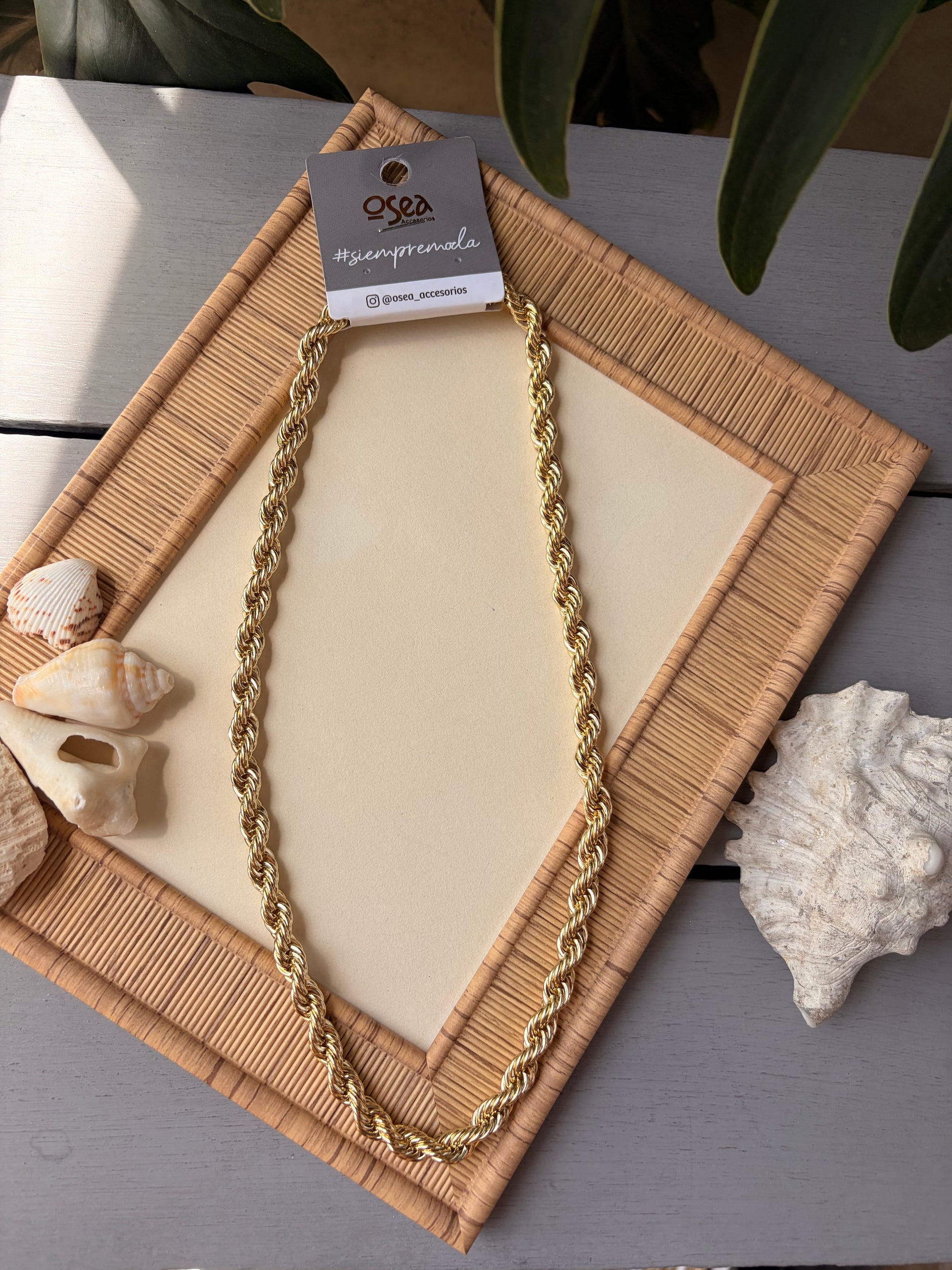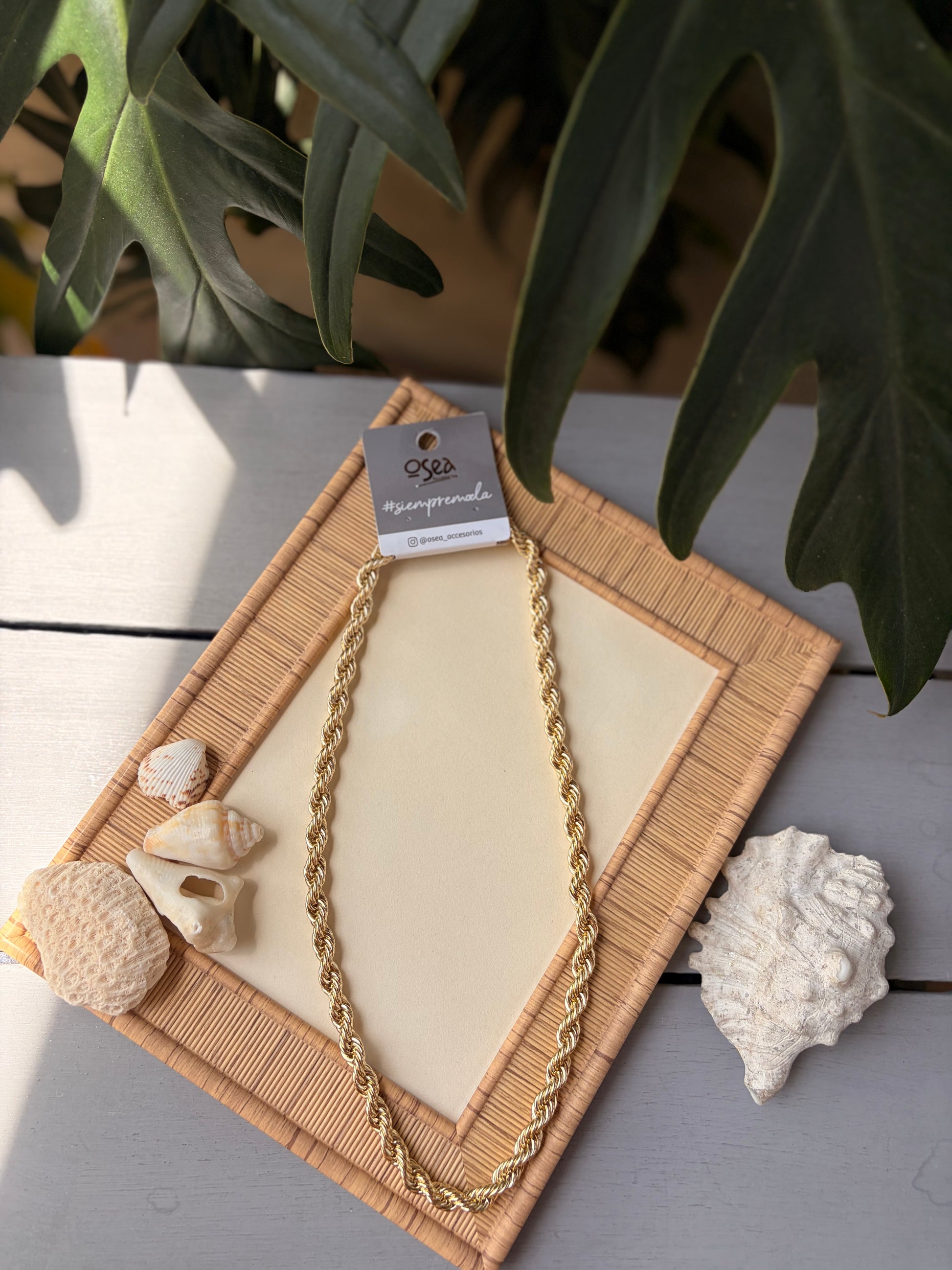 ¡Haz brillar tu estilo con nuestra cadena rodinada trenzada! Perfecta para aquellas fiestas especiales y para siempre lucir hermosa. ¡Con su brillo único, no pasarás desapercibida!