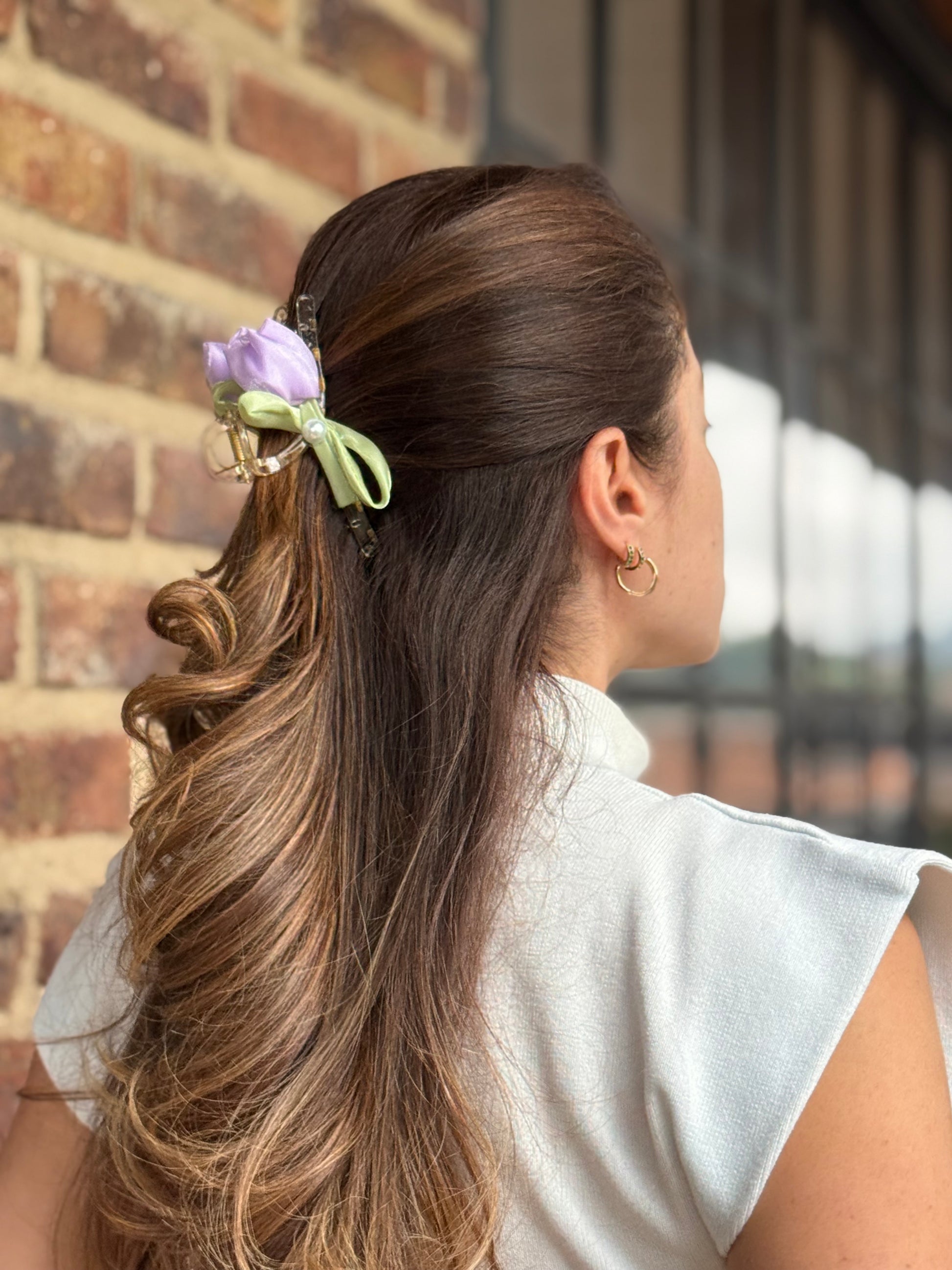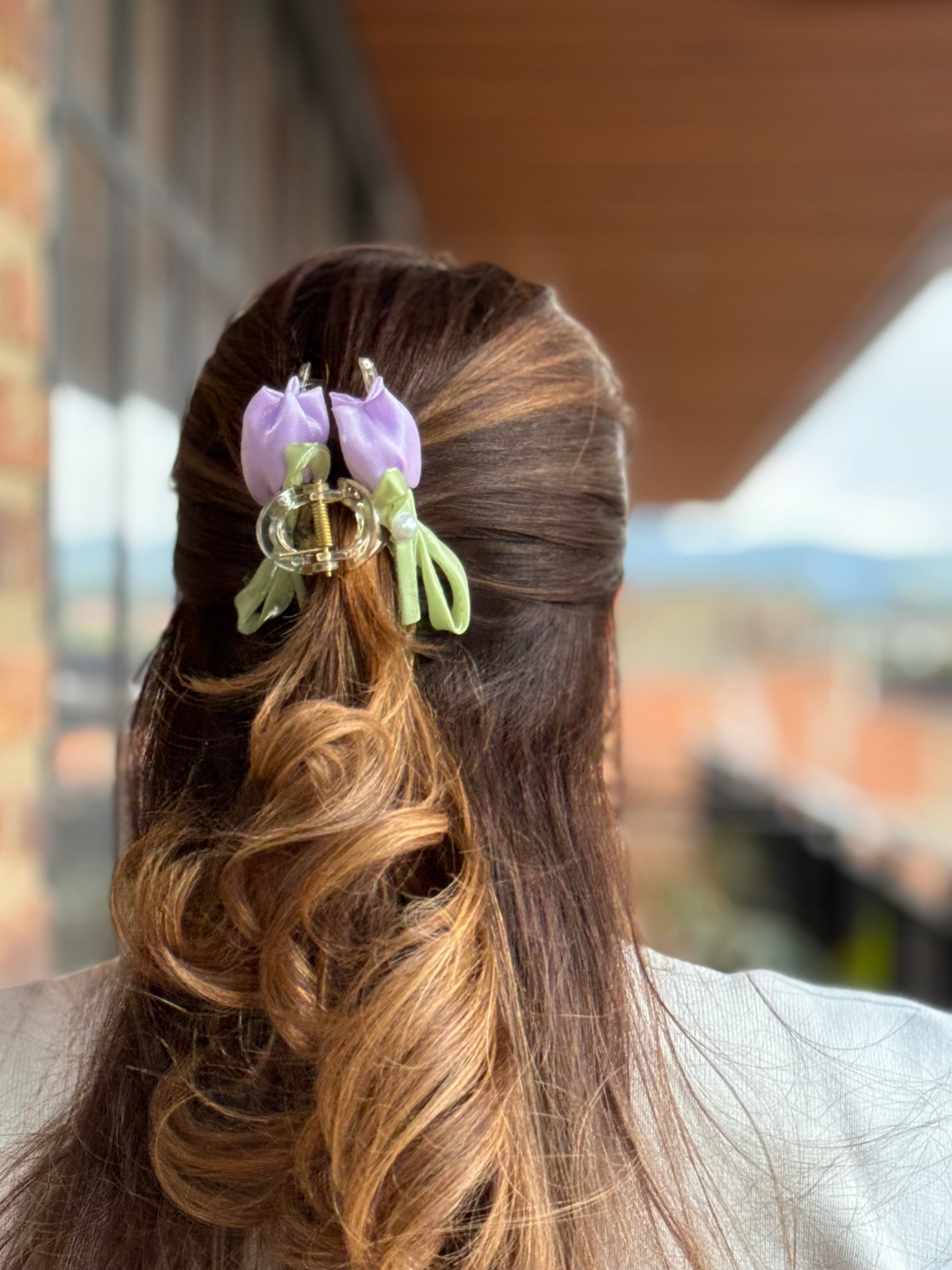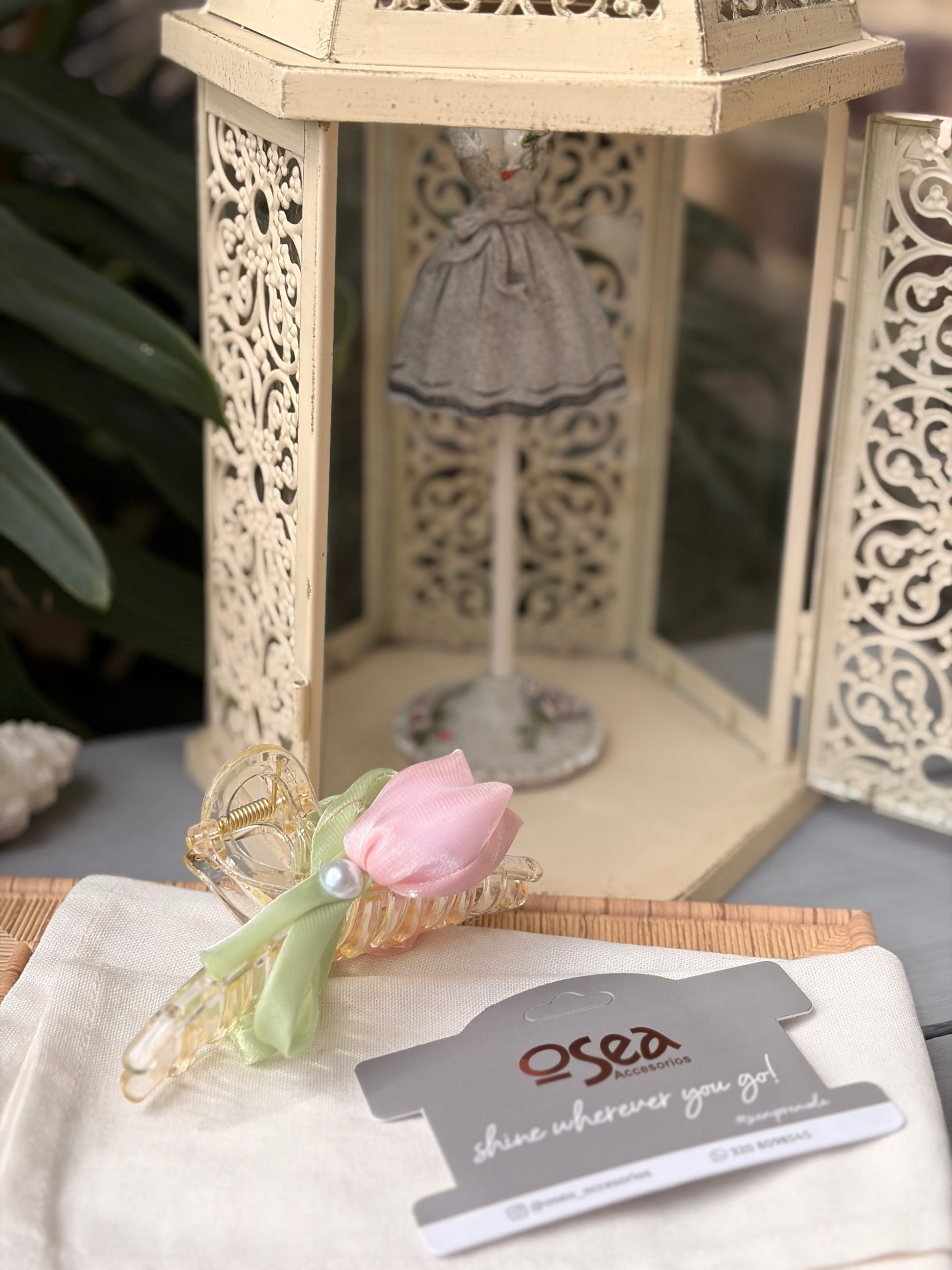 ¡Consigue un look a la moda con el caimán con tulipanes! Este accesorio no solo recoge tu cabello de forma elegante, sino que también le da un toque de color y sofisticación. Perfecto para cualquier ocasión, te hará sentir segura y hermosa. ¡Haz una declaración con tu cabello!