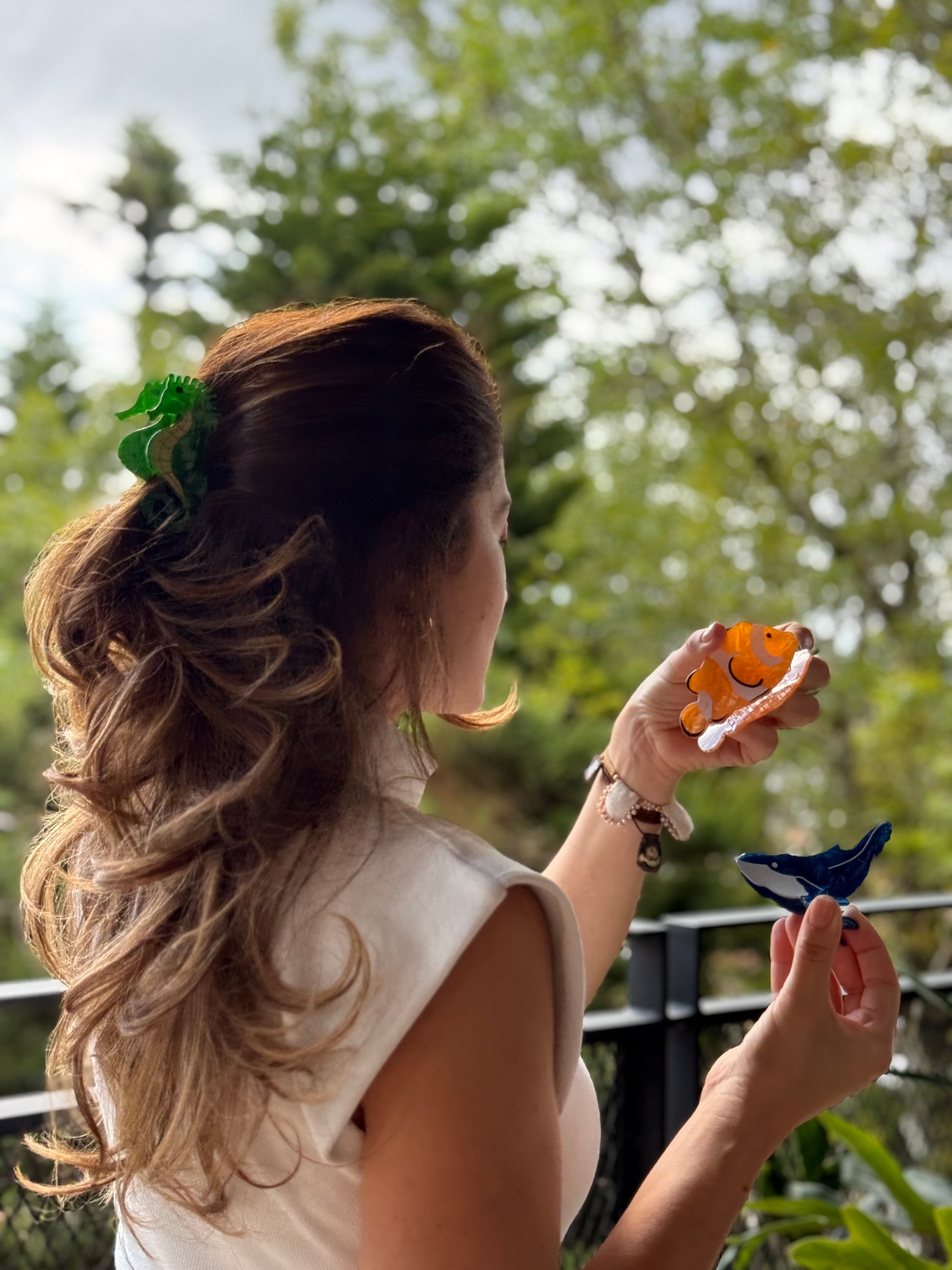 Disfruta del sol y la arena sin preocupaciones con nuestro caimán en figuras marinas. Diseñado para mantener tu cabello perfectamente recogido y protegido durante tus días de playa, este accesorio combina funcionalidad con un toque de estilo marino que te acompañará en cada aventura. Su diseño versátil te permite lucir elegante y fresca, sin importar si estás en la orilla del mar o disfrutando del ambiente playero. Un complemento imprescindible para quienes buscan mantener su cabello en su lugar mientras se sienten seguras y hermosas.