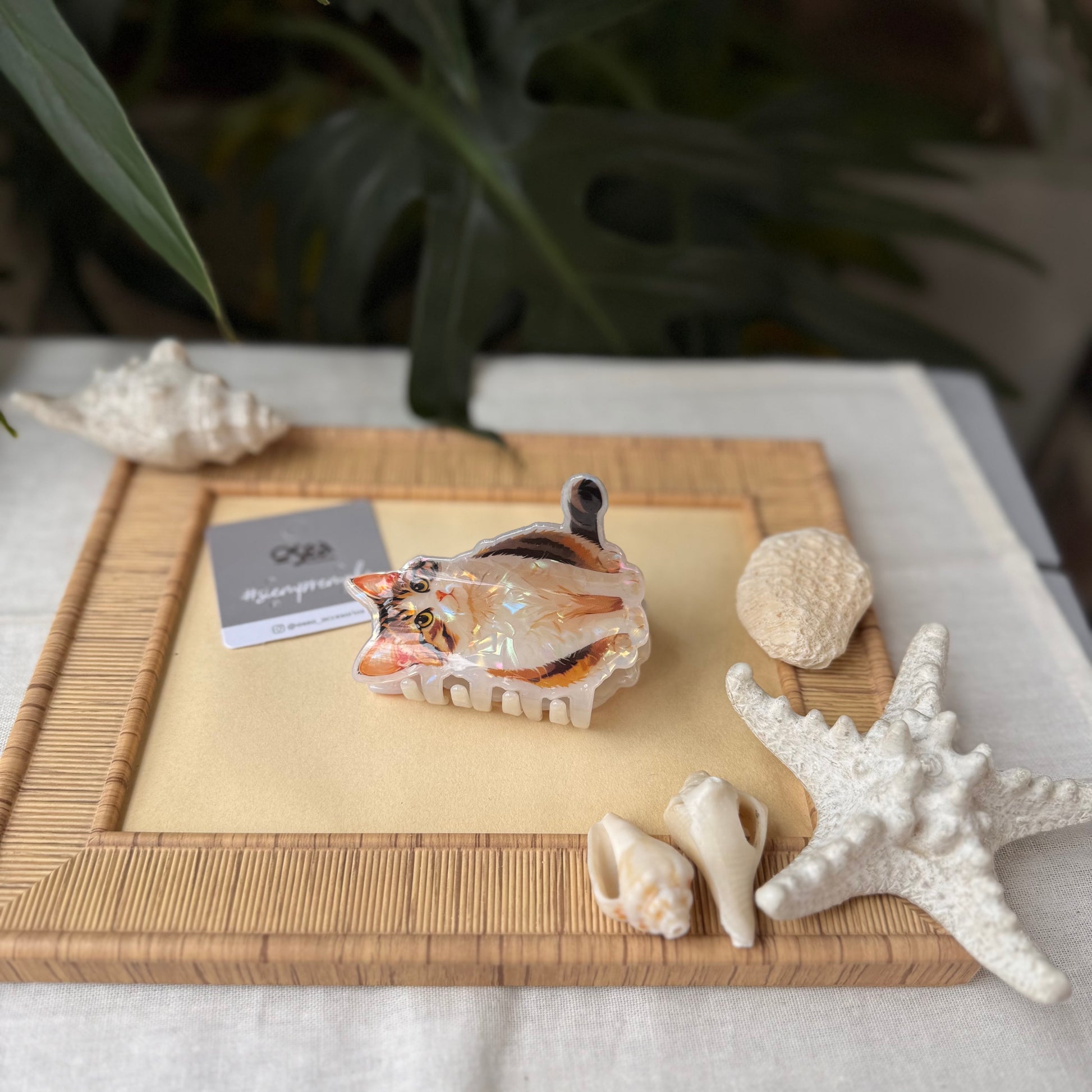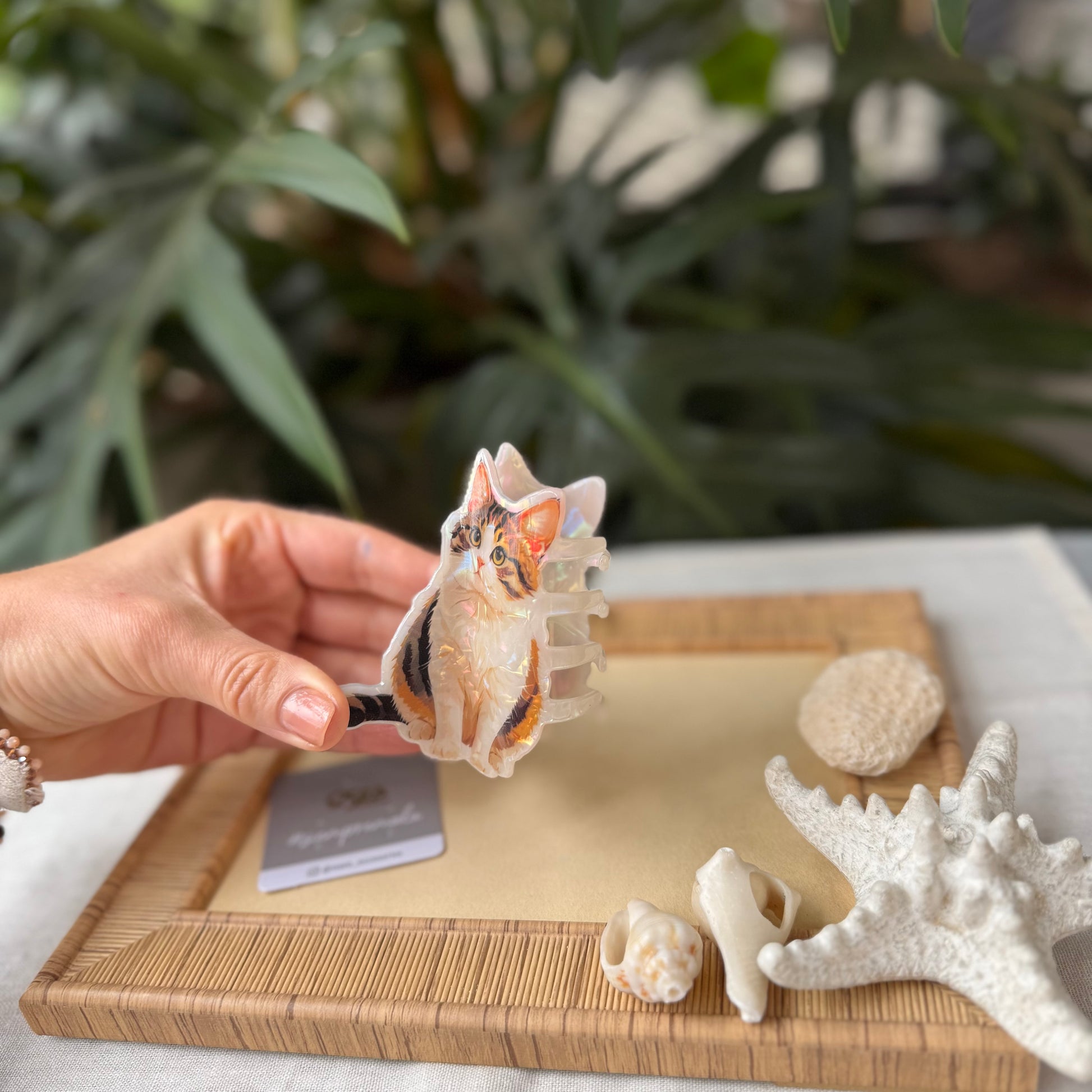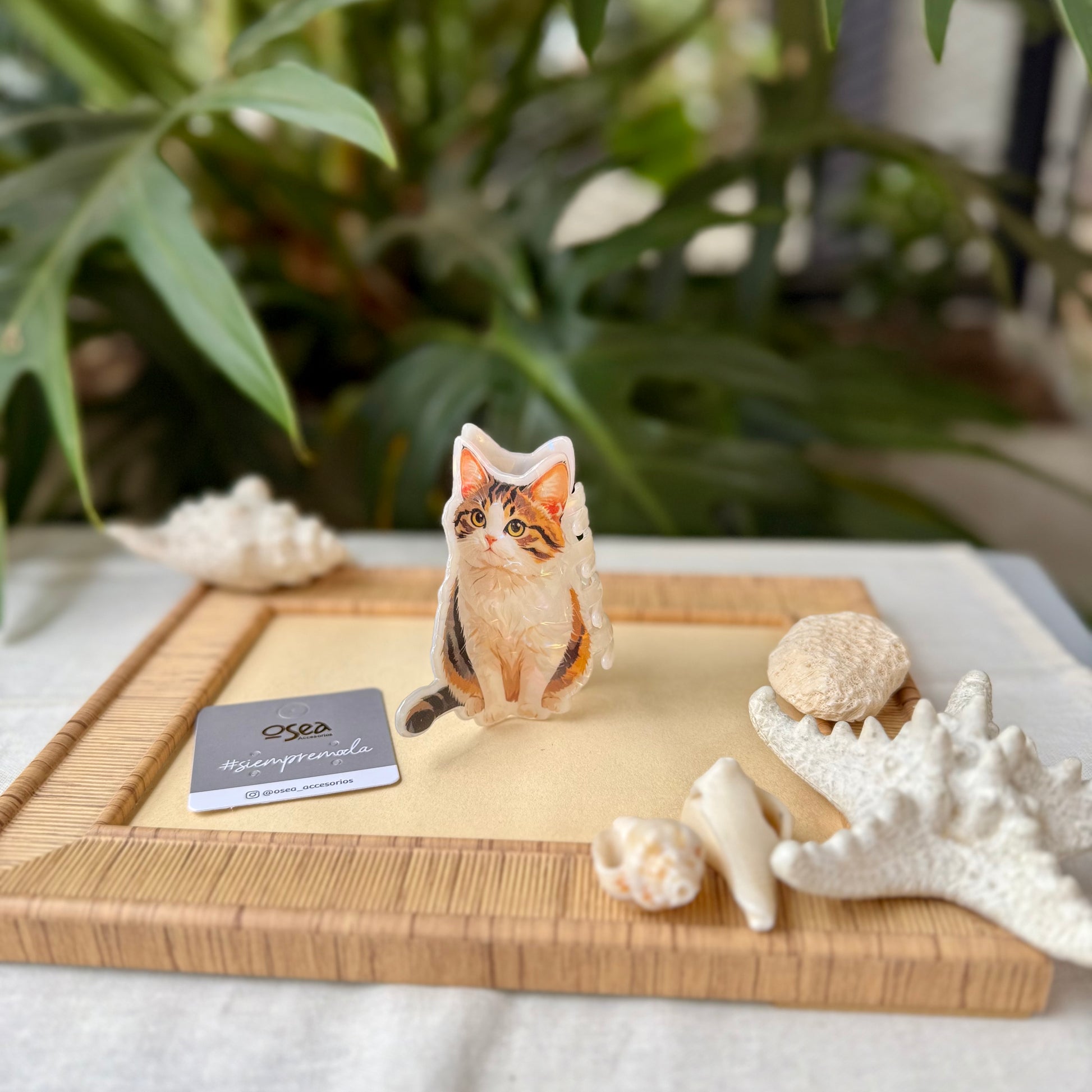 Hermoso Caimán tipo nácar con forma de gato. Destaca y lleva tu cabello con estilo luciendo tu amor por los felinos.