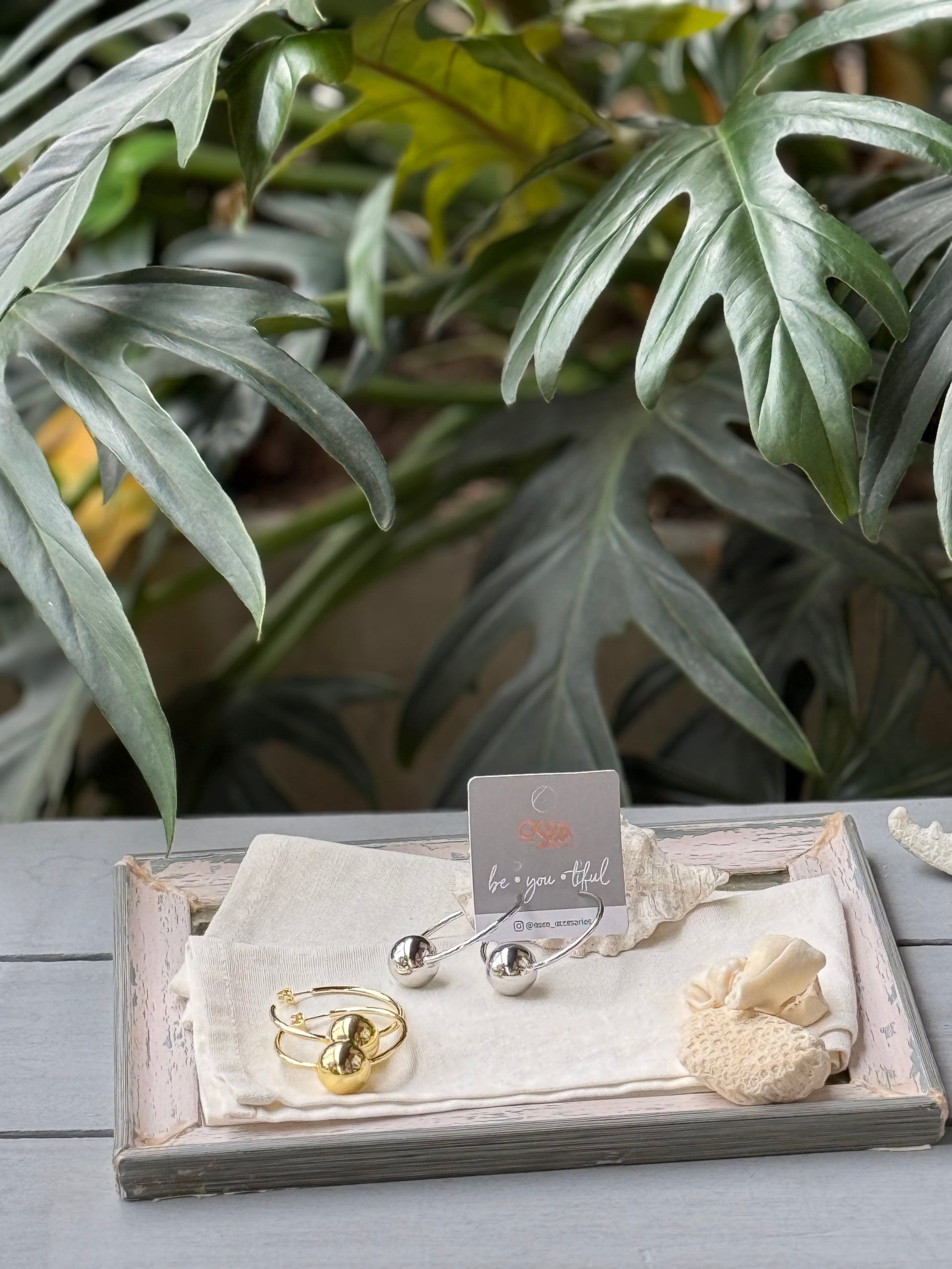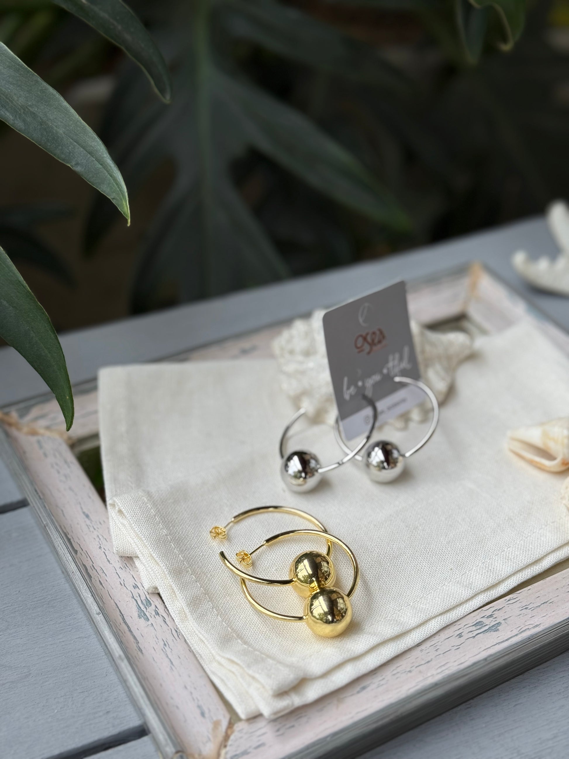 ¡Realza tu estilo con estos aretes tipo candonga! Hechos con una mediana esfera que aporta un toque único a tu look. Perfectos para una fiesta o cualquier ocasión especial. Se adapta fácilmente a cualquier atuendo y te hace lucir elegante y sofisticada. ¡Haz una declaración de moda con Candonga mediana esfera!