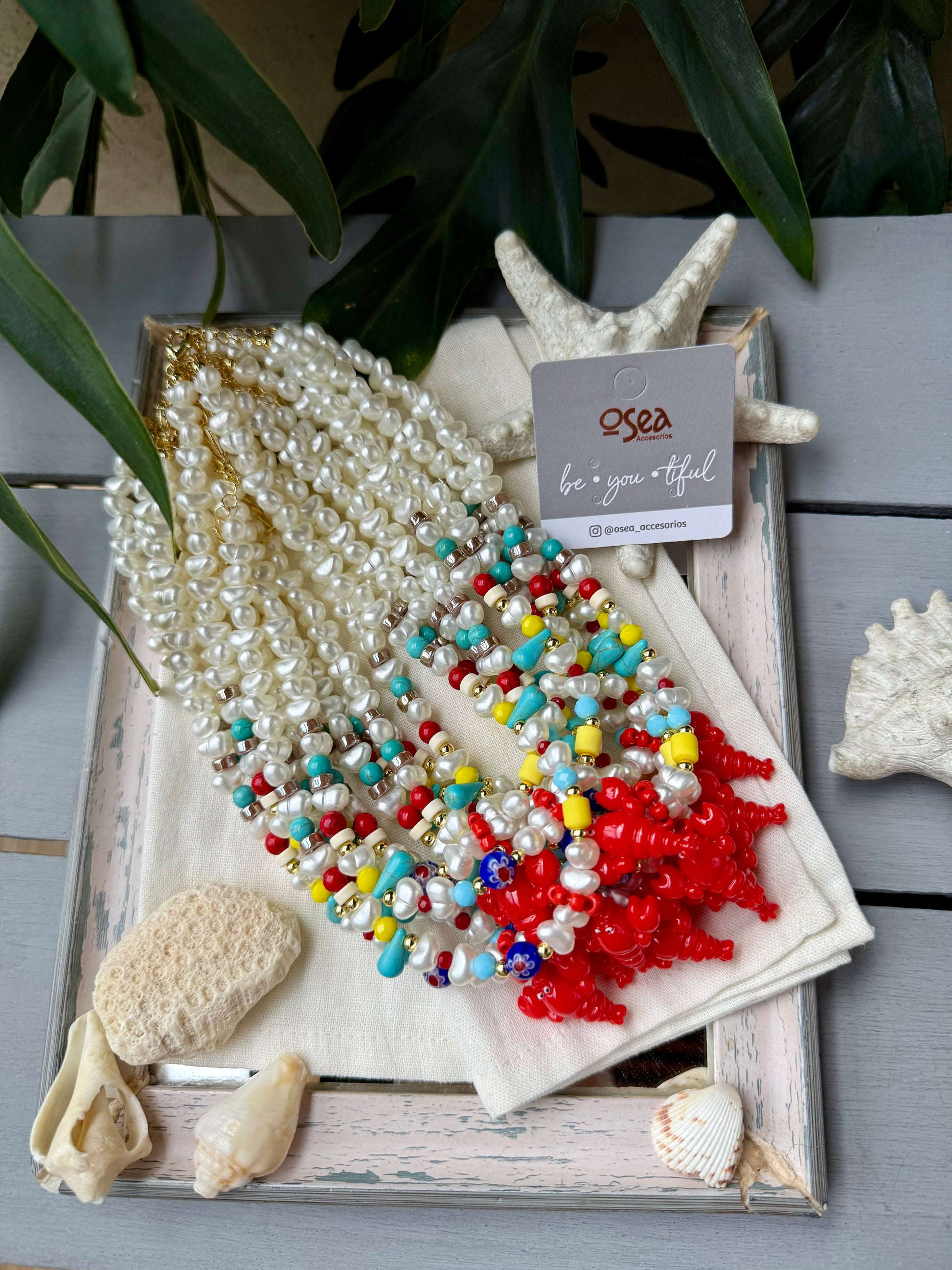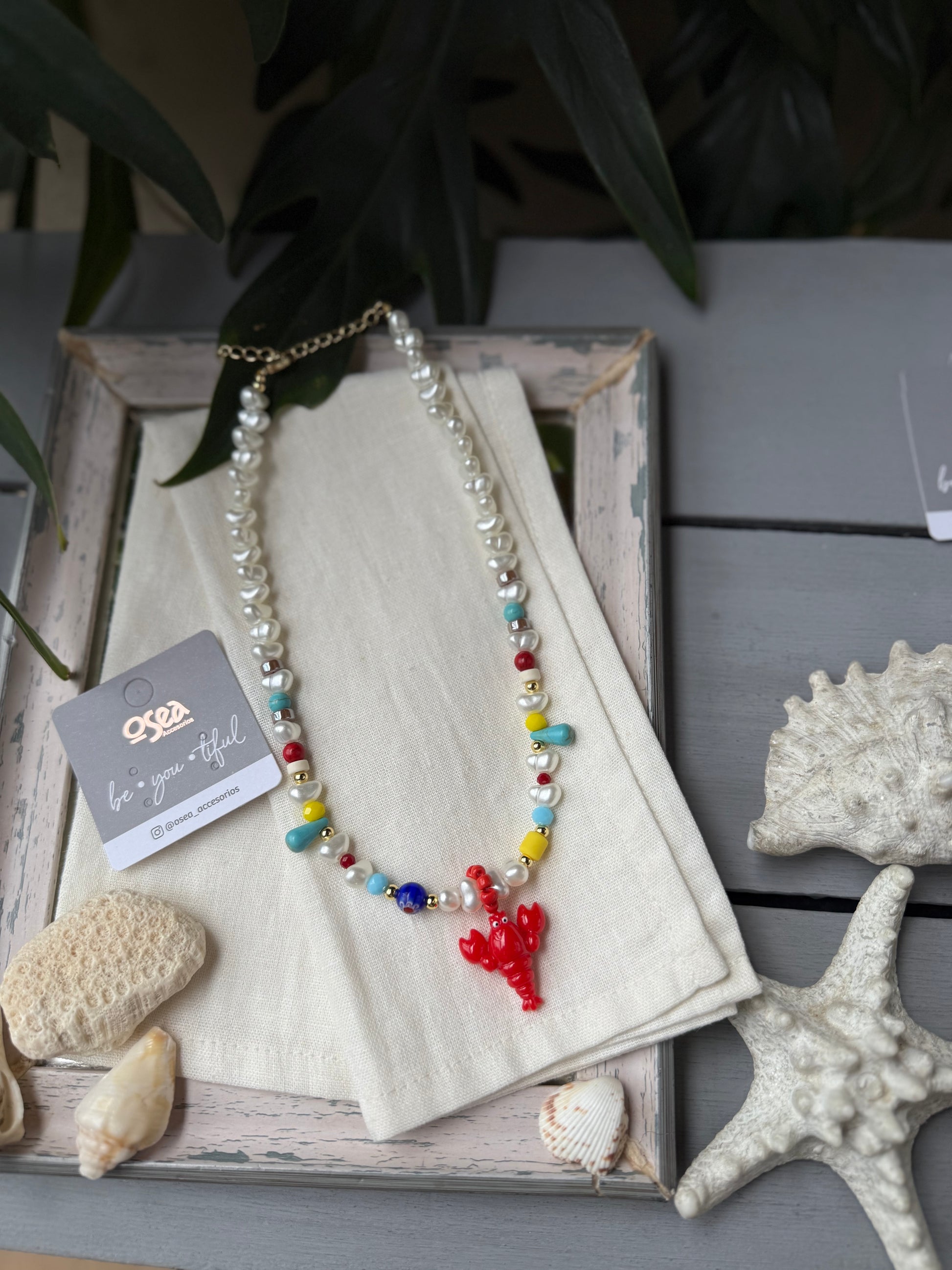 ¡Resalta tu estilo con nuestro collar corto en perla plástica y piedras, con dije plástico en forma de cangrejo! Añade un toque de estilo a tus looks ¡Luce elegante y a la moda con este collar corto!