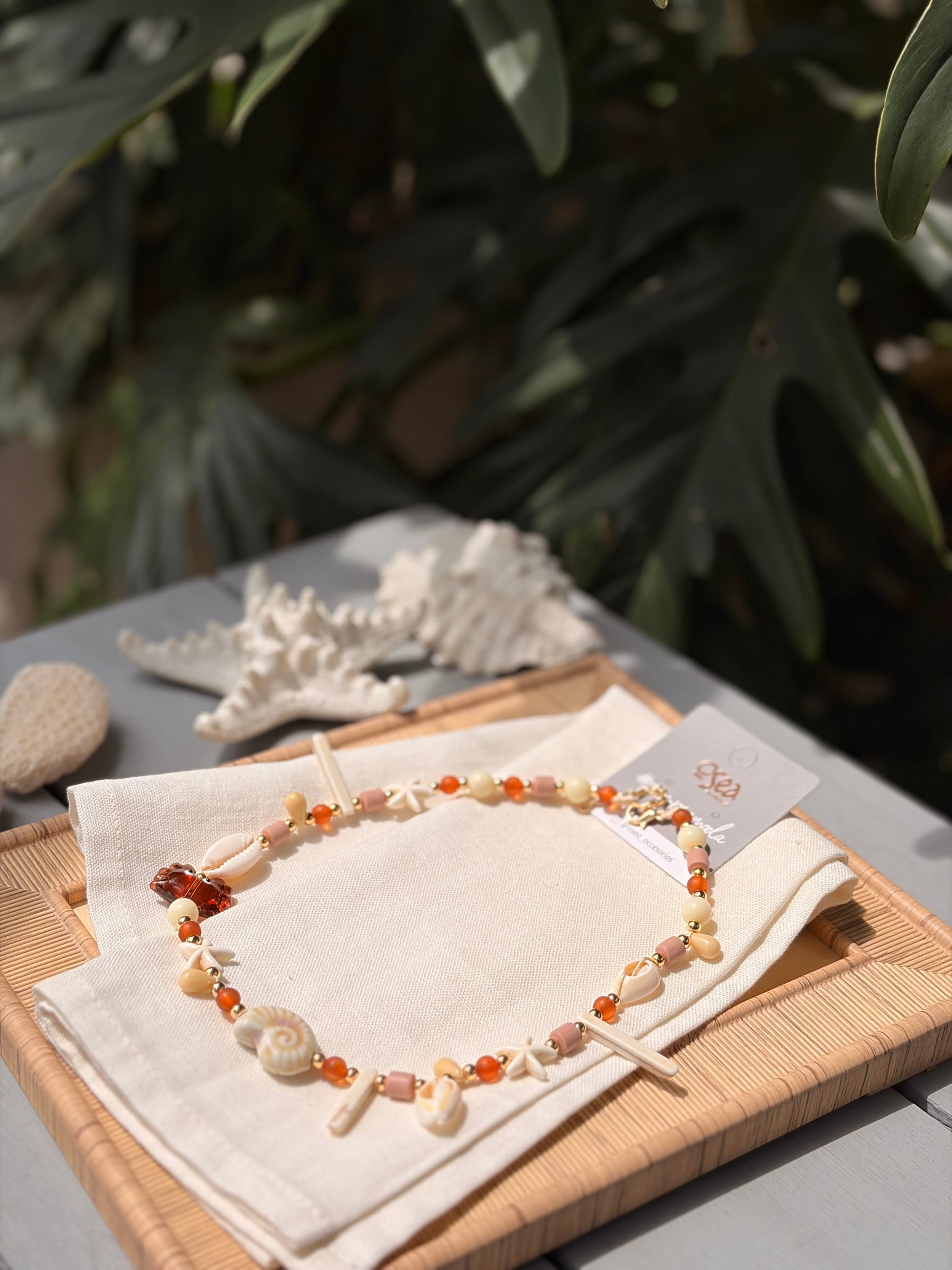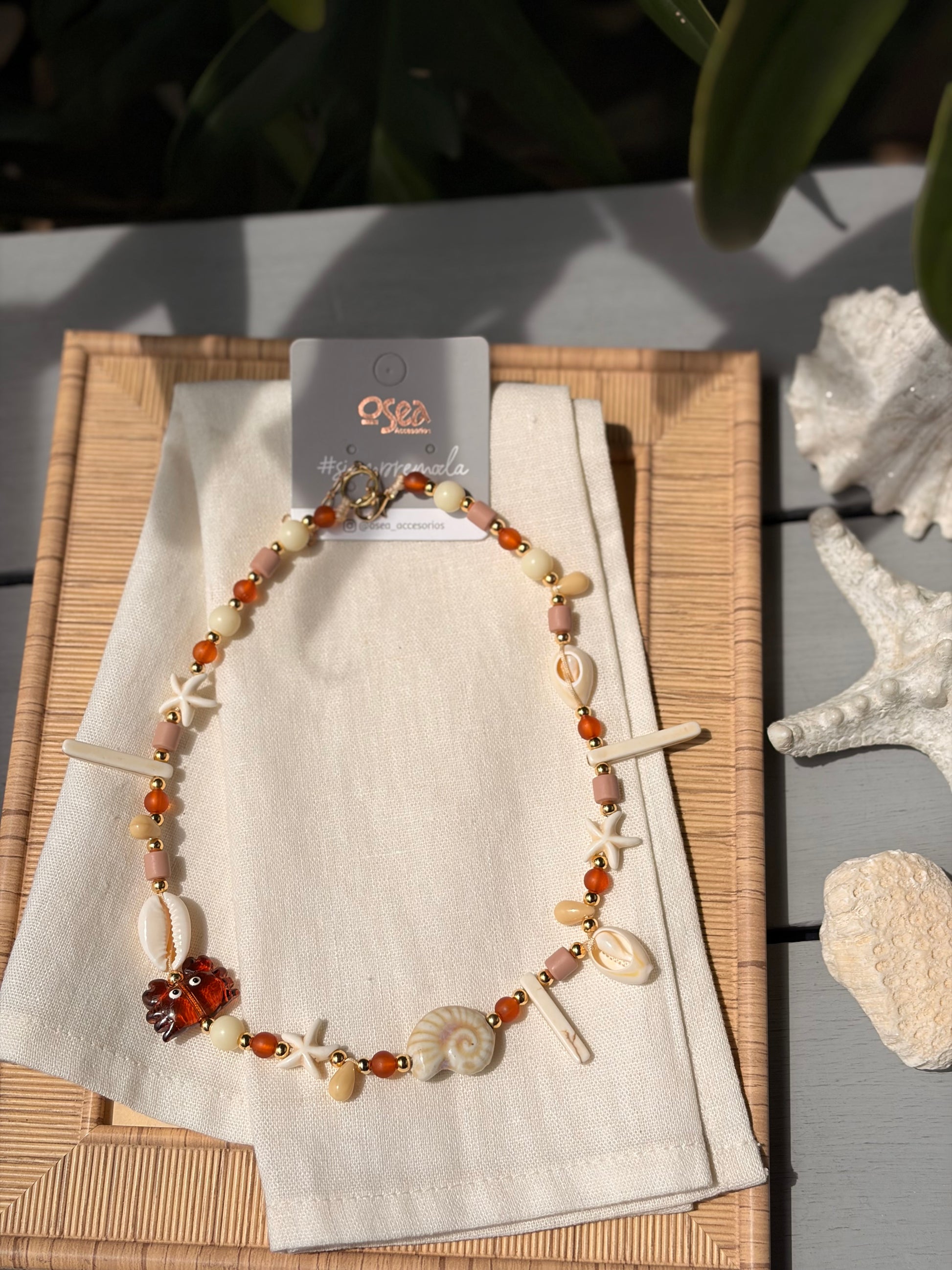 Luce radiante con el collar corto playero de conchas y estrellas en tonos tierra. Este accesorio evoca la calidez del sol y la brisa marina, transportándote a la playa en cada uso. Ideal para complementar tu estilo y sentirte conectada con la naturaleza. ¡Despierta tu espíritu playero!
