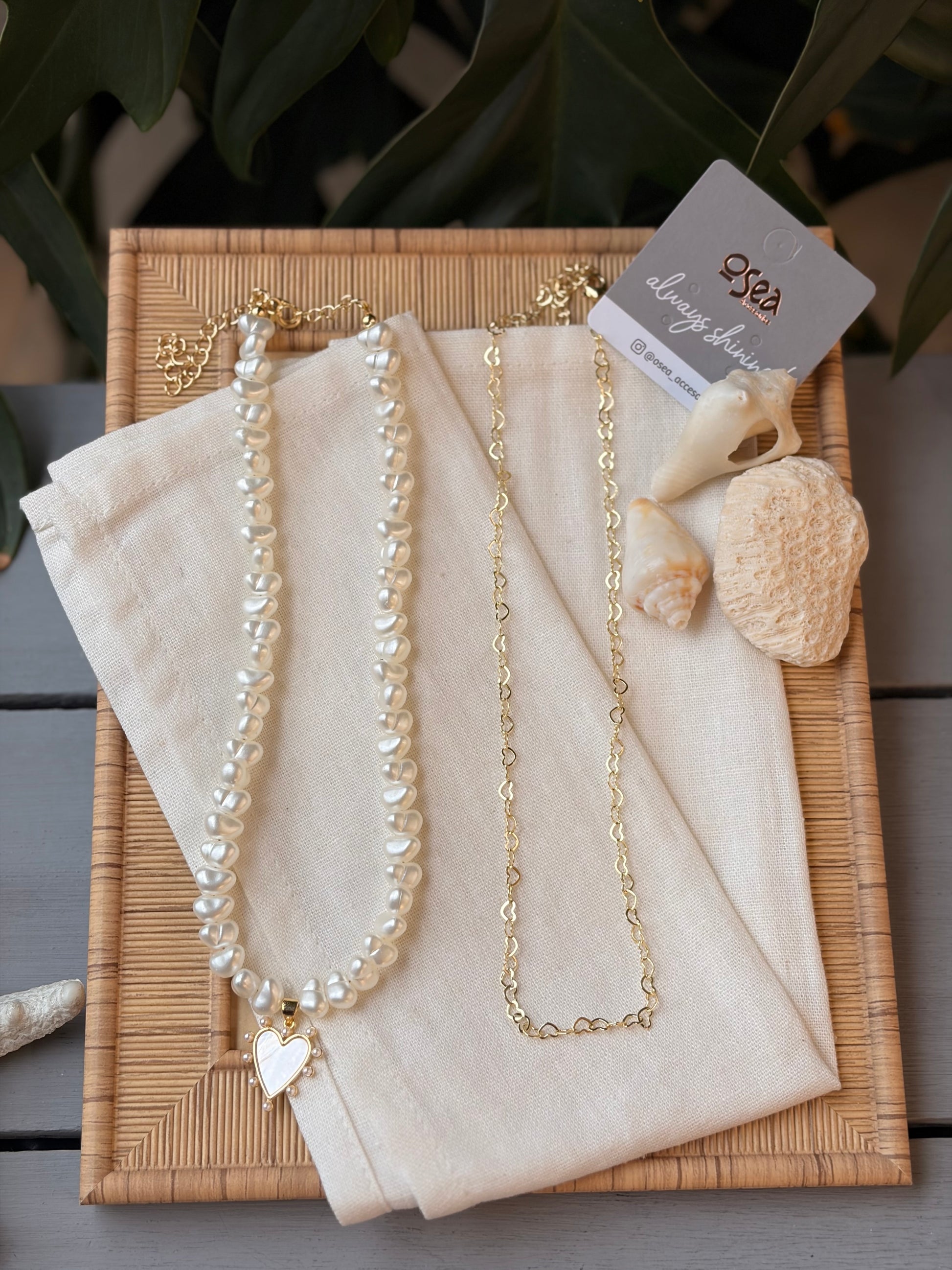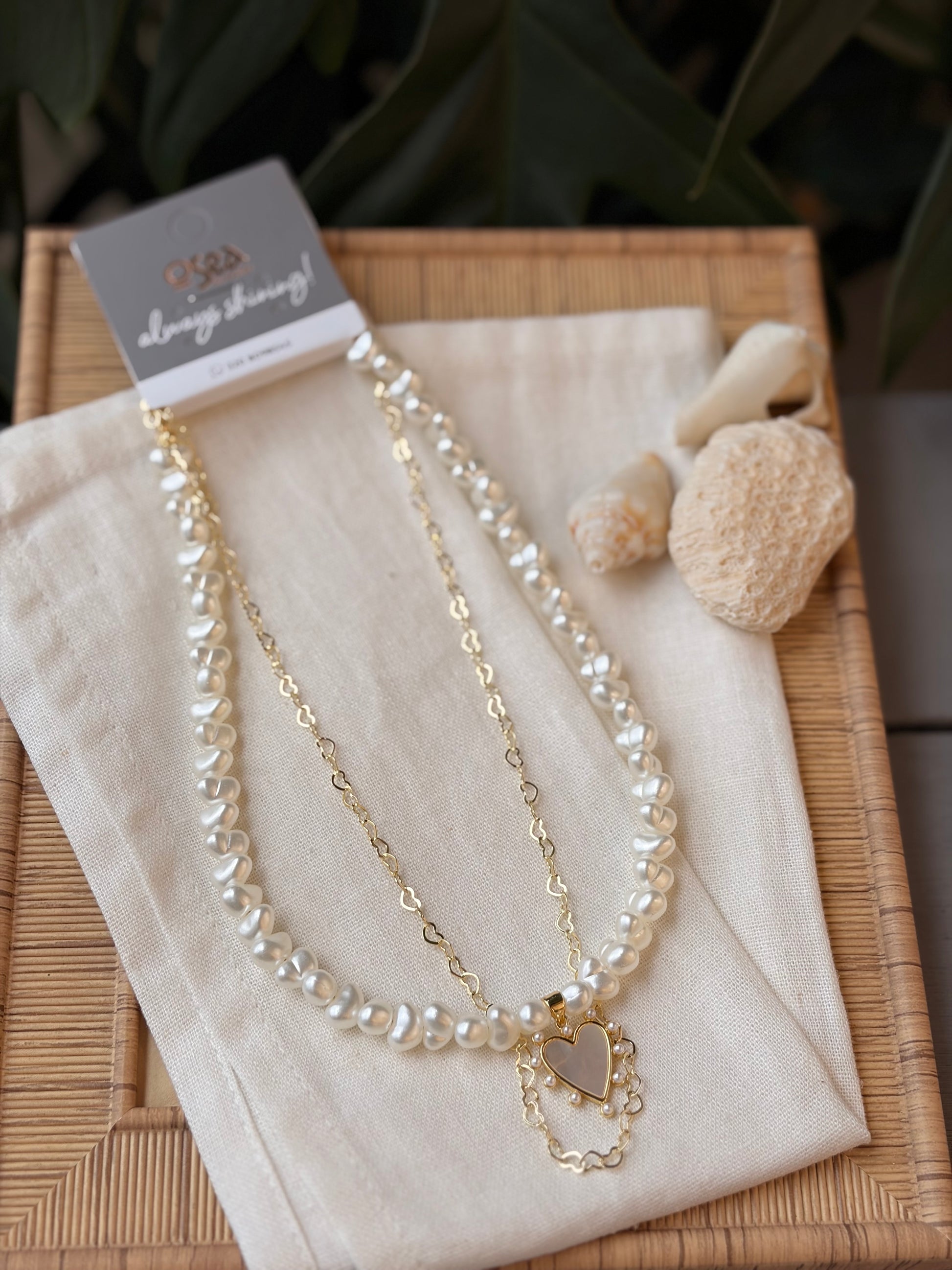 ¡Luce elegante y única con nuestro collar doble de perlas irregulares! Este accesorio te ofrece dos collares en uno, perfecto para lucir diferentes estilos en una sola pieza. Hecho con perlas irregulares y cadena rodinada, es una opción versátil y moderna para cualquier ocasión. ¡Haz una declaración de estilo con nuestro collar doble!