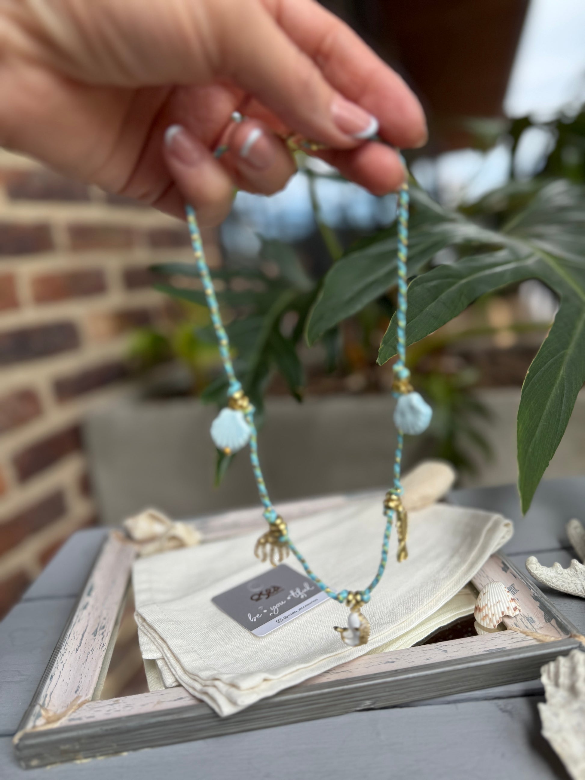 "Añade un toque marino a tu look con nuestro collar de cordón trenzado y dijes marinos. Los dijes rodinados le dan un brillo sutil para un estilo único y elegante. Lleva las tendencias de moda femenina contigo y haz una declaración con este accesorio imprescindible!"