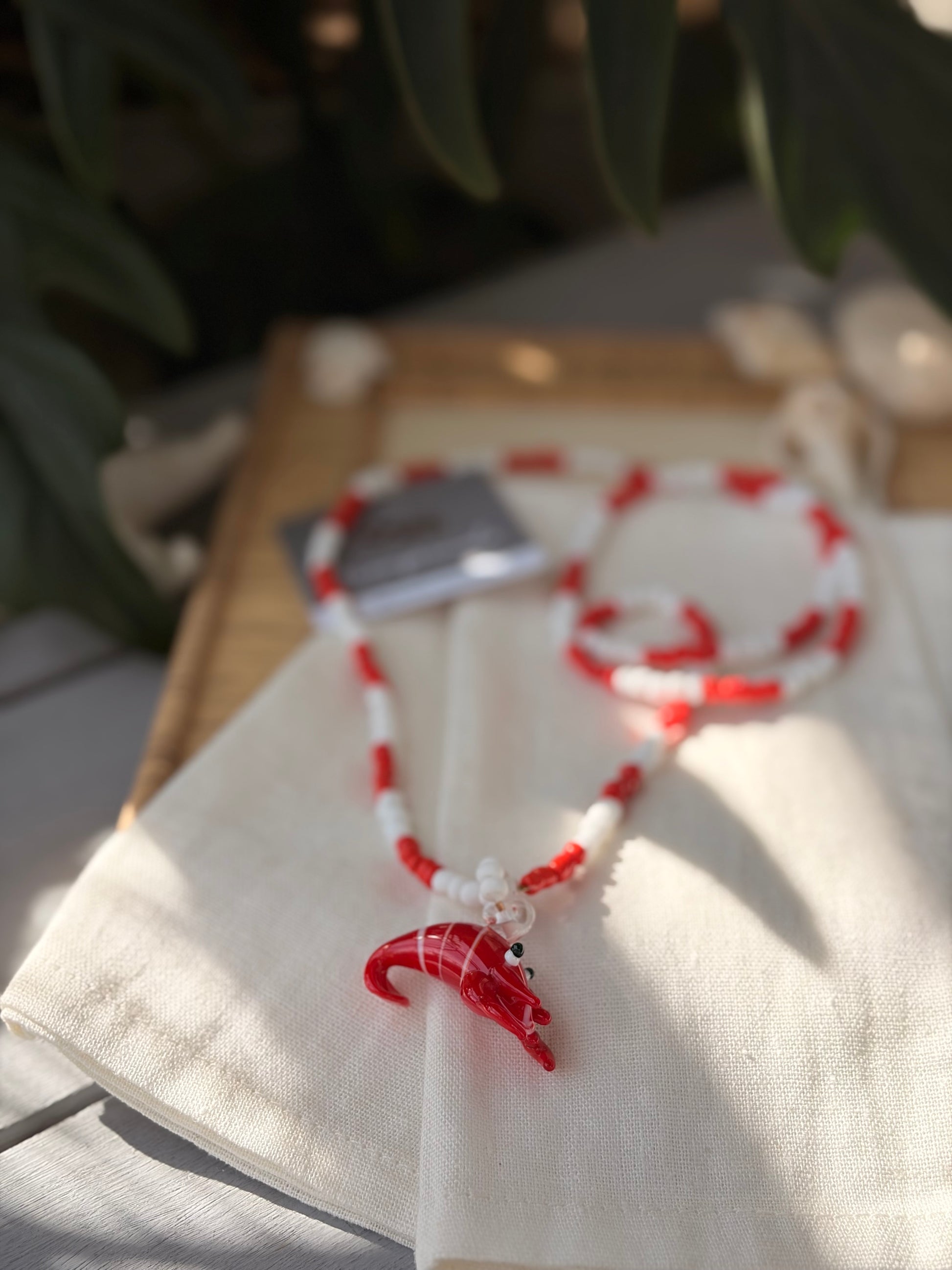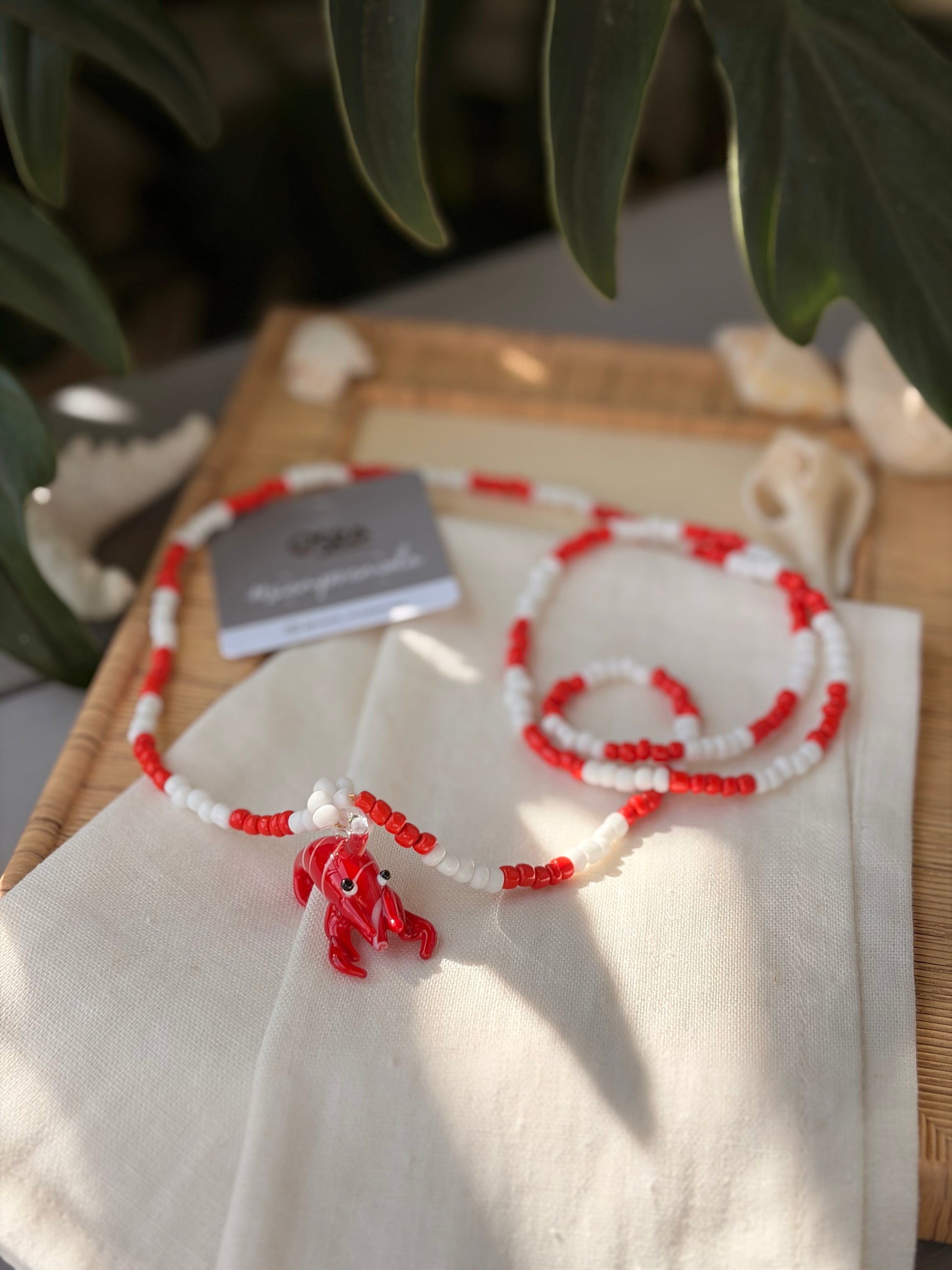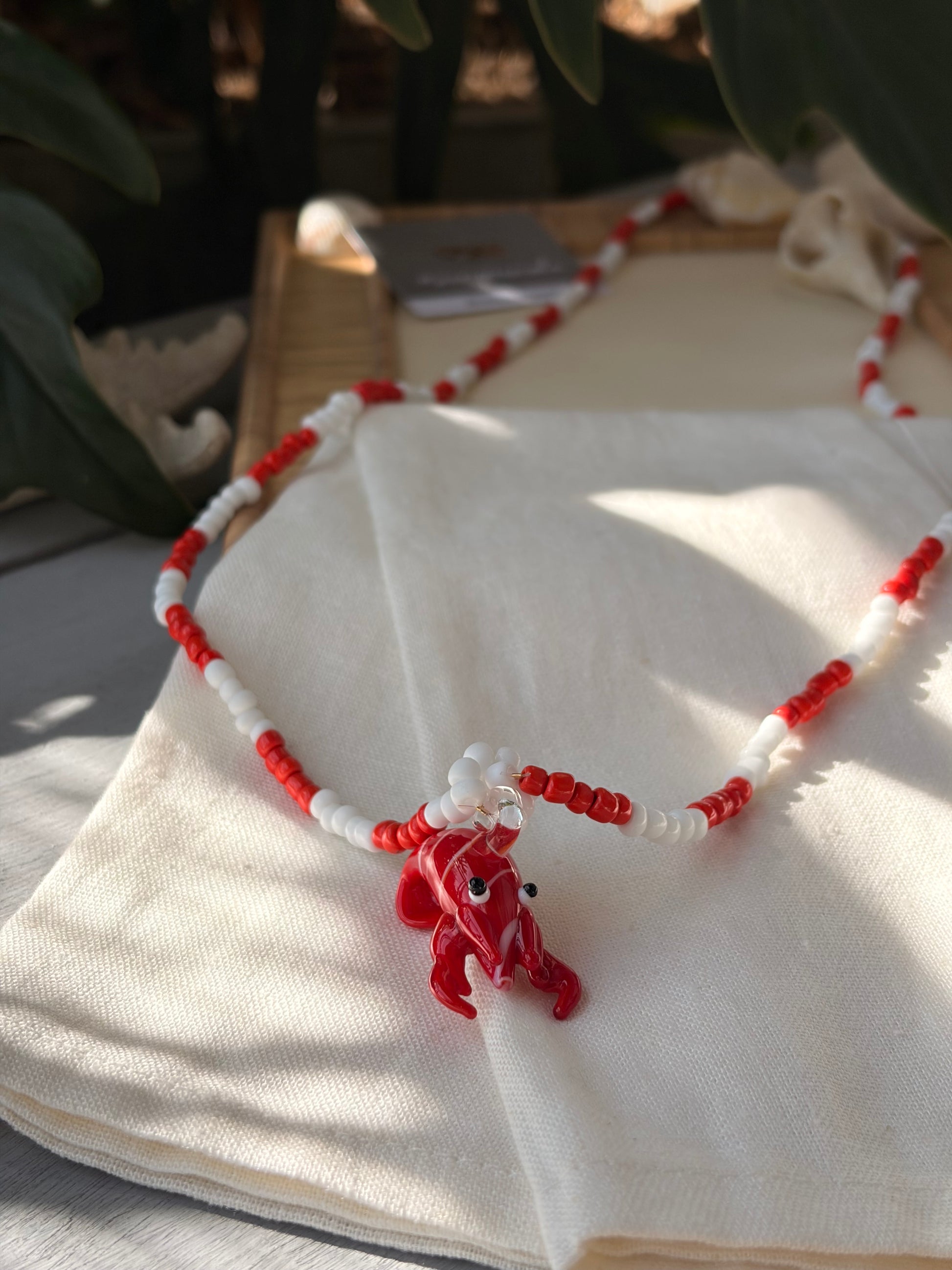 ¡Luce elegante y chic con nuestro collar largo en mostacilla con un precioso dije en cristal en forma de langosta! El complemento perfecto para cualquier outfit, añadiendo un toque de brillo y sofisticación. ¡Destaca con este detalle único y siente la belleza del cristal en tu cuello!