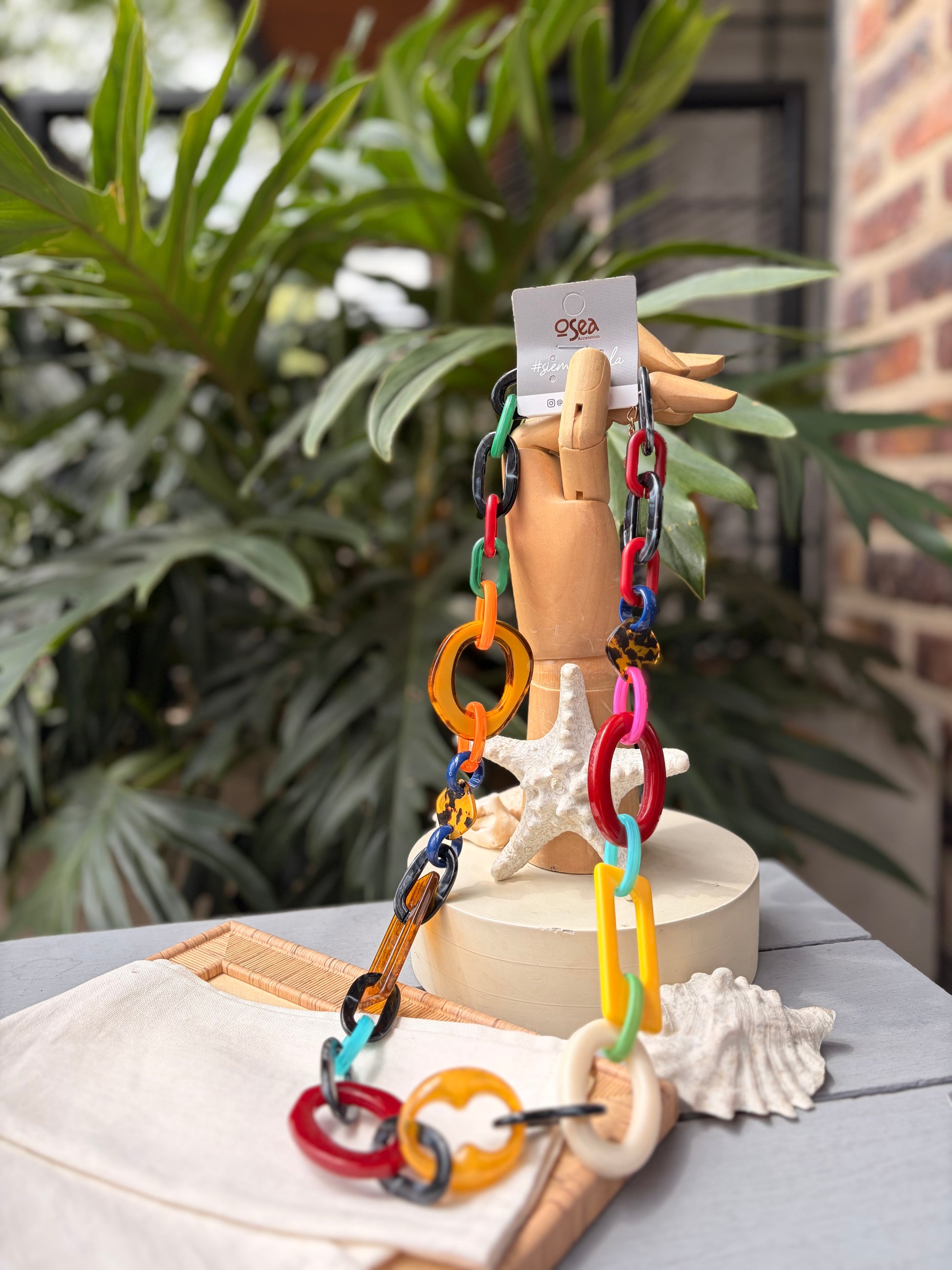 Collar largo en resina multicolor