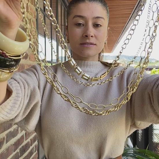 ¡Brilla como una estrella con nuestro collar multicadenas en fantasía fina! Este elegante collar es perfecto para añadir un toque de glamour a cualquier atuendo. Con sus múltiples cadenas, llamarás la atención y te sentirás como una verdadera estrella. Destaca entre la multitud y luce hermosa con nuestro collar de alta calidad. ¡Hazte con él ahora!
