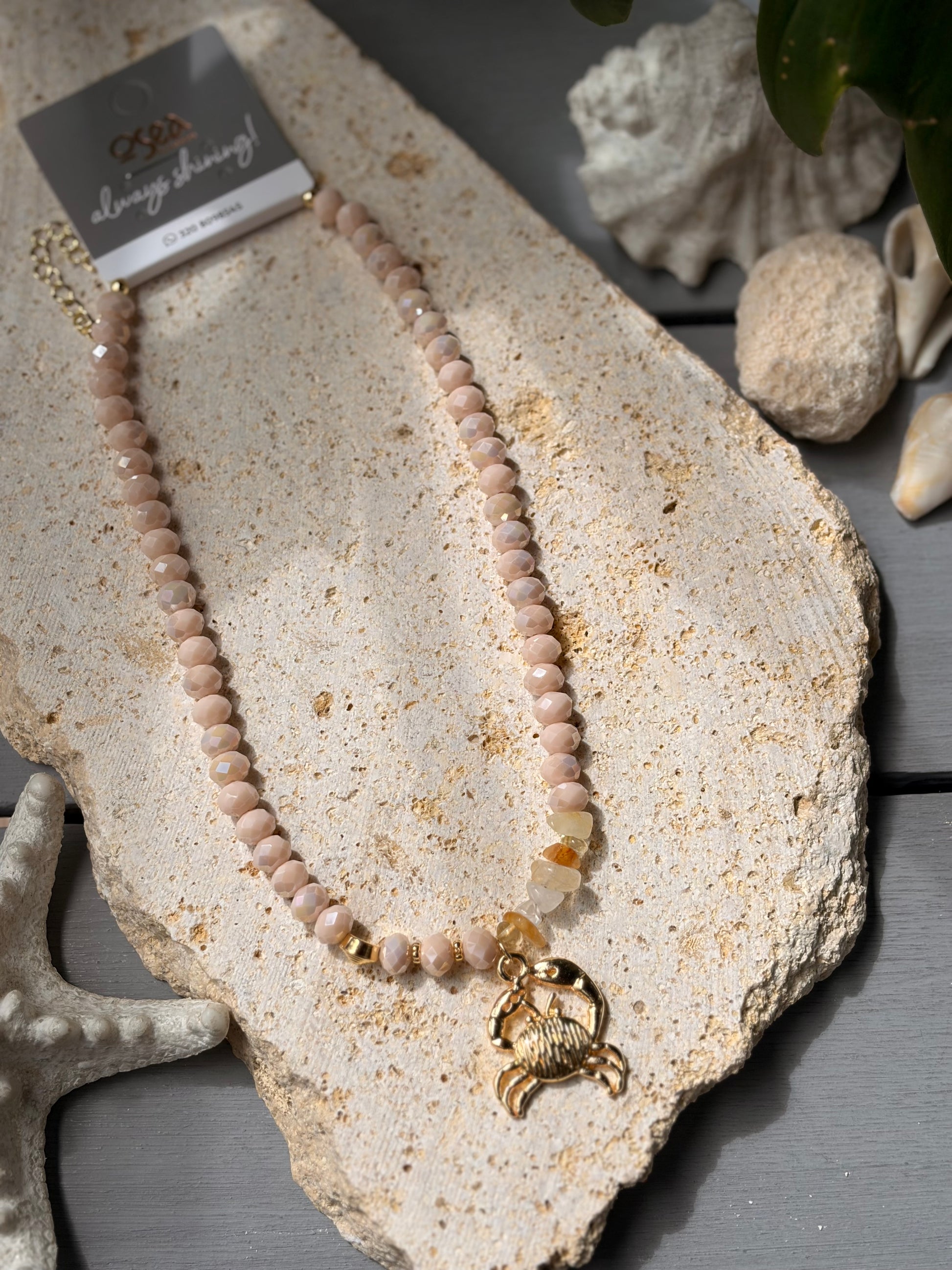 Collar piedras y dije cangrejo 24k