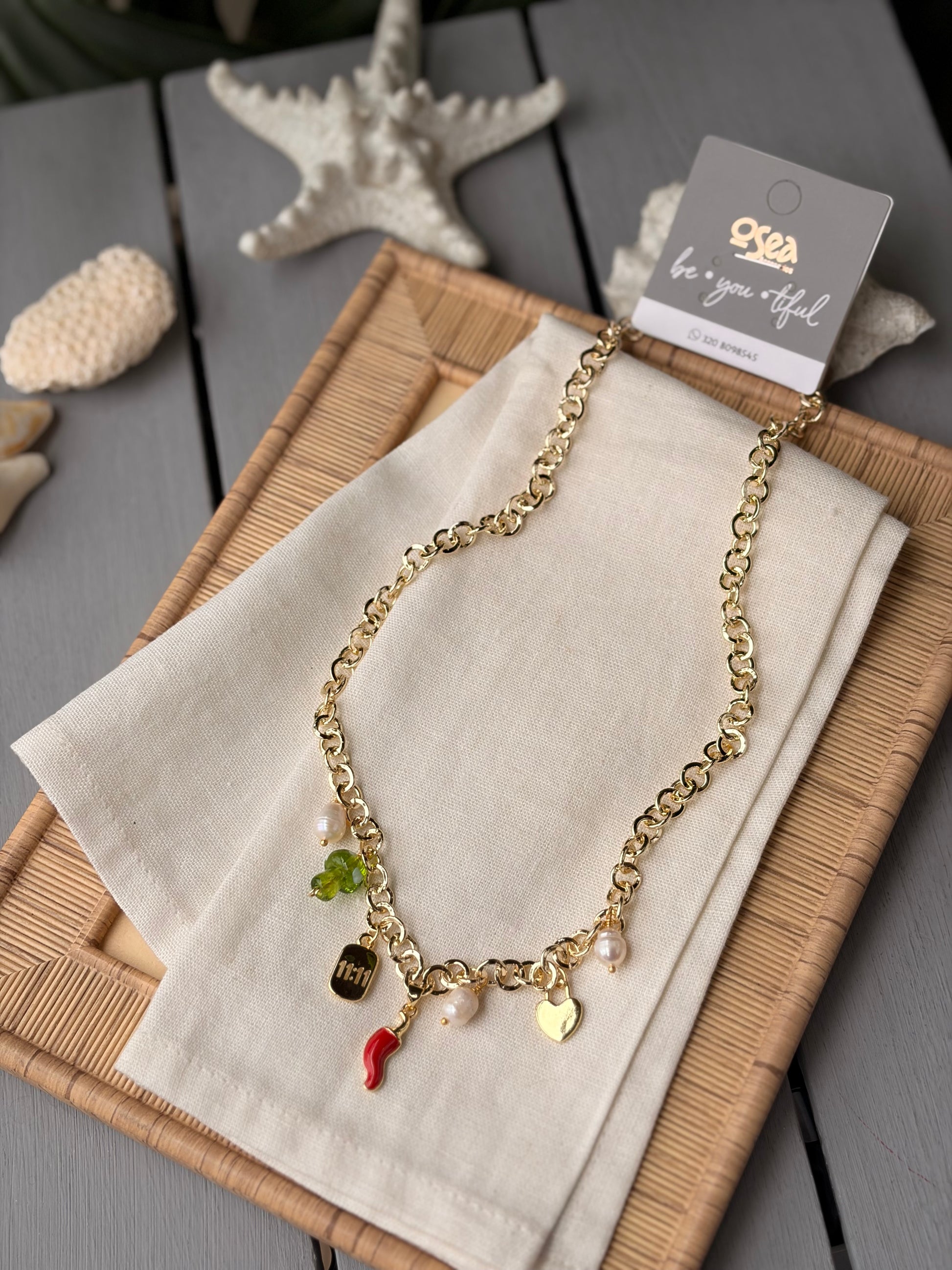 Descubre la elegancia del collar rodinado con dijes variados. Este exquisito collar de cadena, con un brillante baño en rodio, realza cualquier atuendo, aportando un toque de sofisticación. Los dijes hermosos cuentan historias y añaden un encanto único, convirtiéndolo en un accesorio esencial para brillar en cada ocasión.
