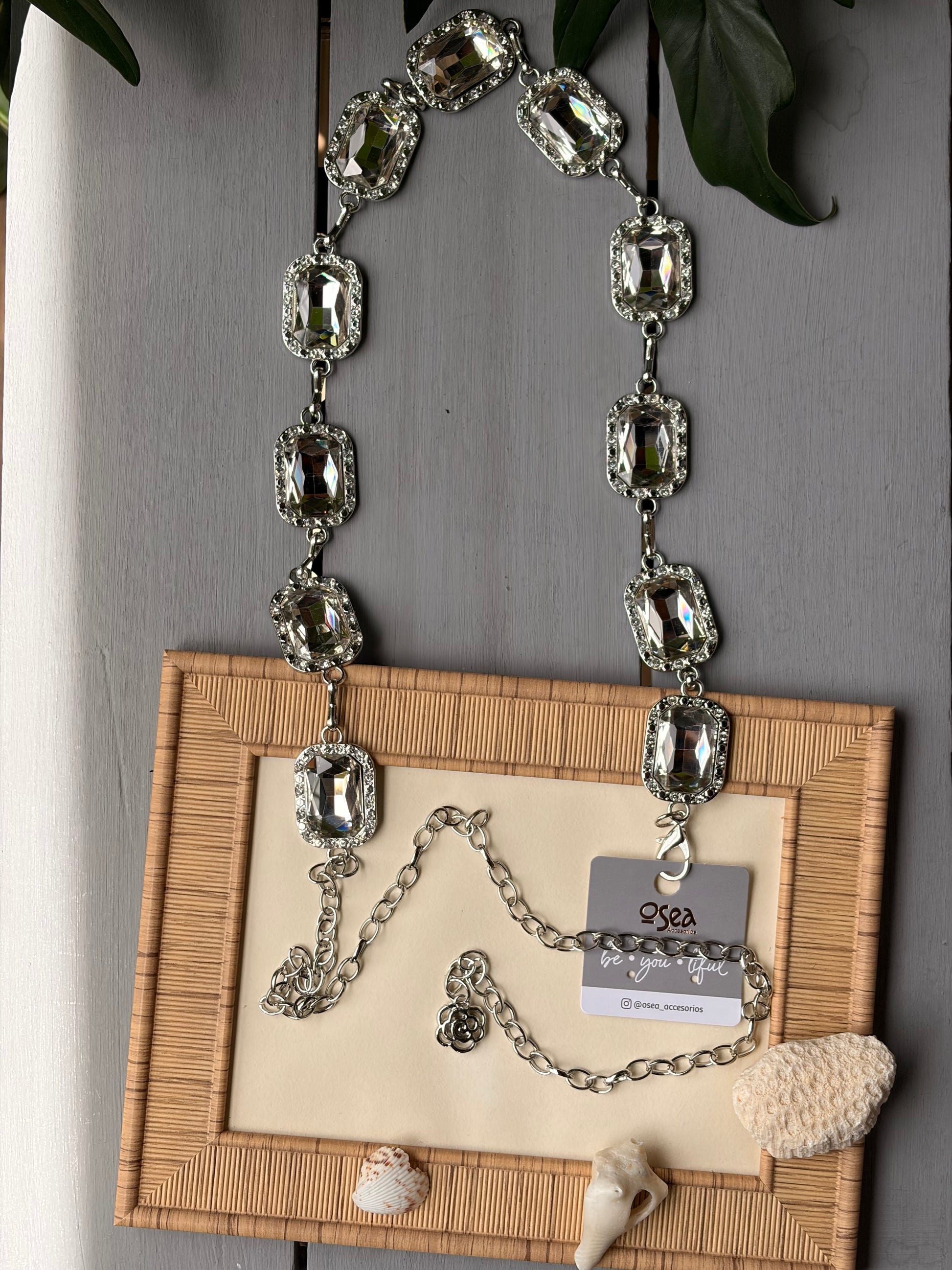 Luce con confianza esta correa cadena que combina piedras cristal con un acabado metálico en fantasía. Un accesorio versátil que se adapta a cualquier ocasión, desde looks cotidianos hasta momentos especiales. Los cristales brillantes aportan luminosidad y sofisticación, mientras que la estructura metálica garantiza resistencia. Elige esta pieza para expresar tu estilo personal con un toque de elegancia que te hará sentir segura y radiante.