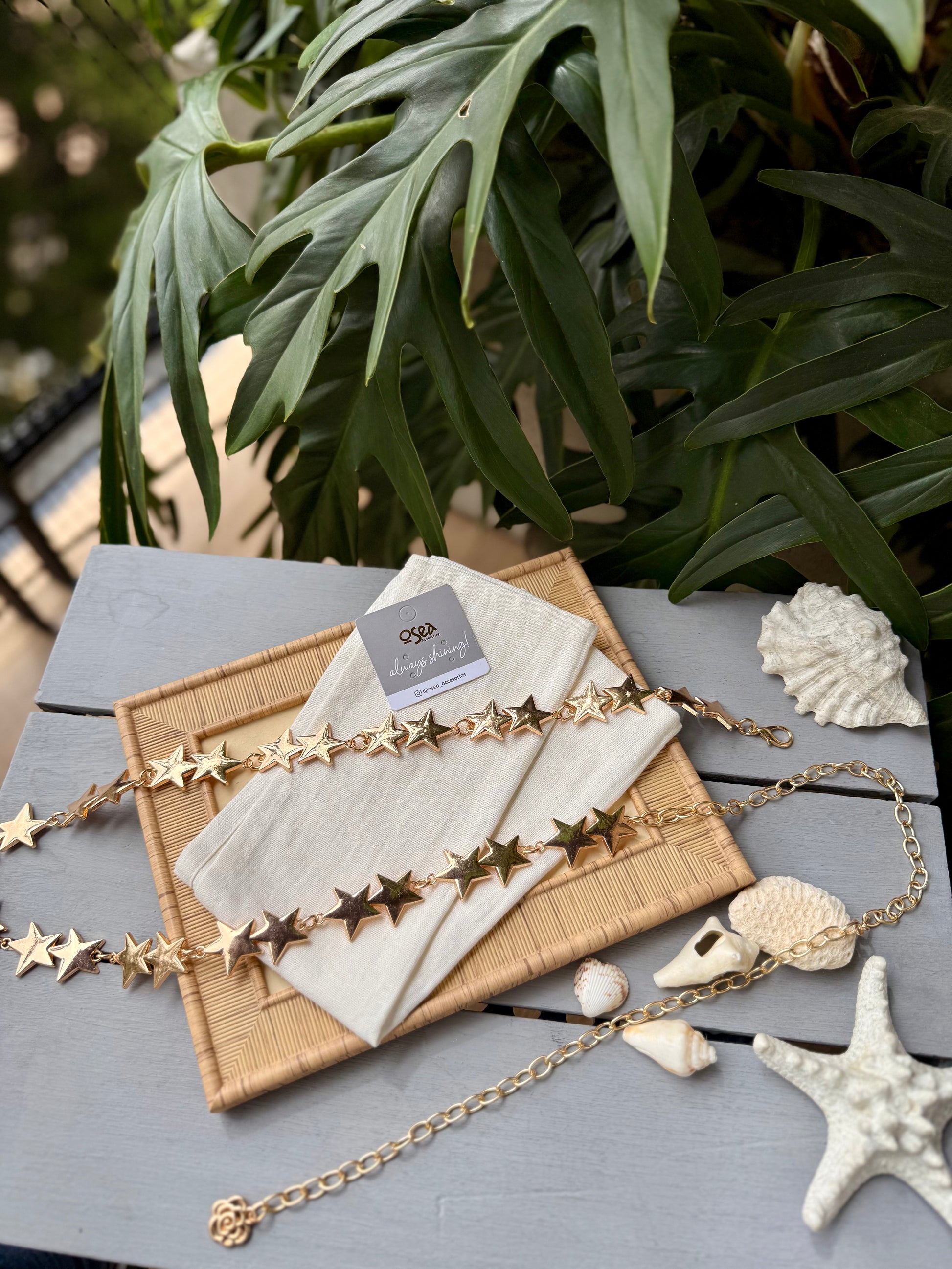 ¡Agrega brillo y estilo a tu atuendo con nuestra correa metálica en cadena con forma de estrellas doradas! Un complemento perfecto para tus looks, esta correa no solo es funcional sino también llamativa. ¡Destaca entre la multitud con este accesorio único!