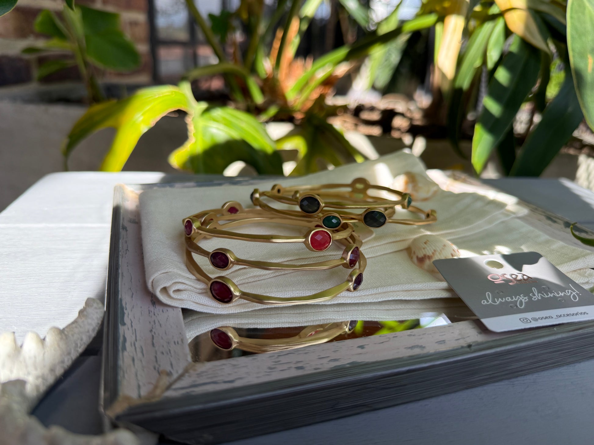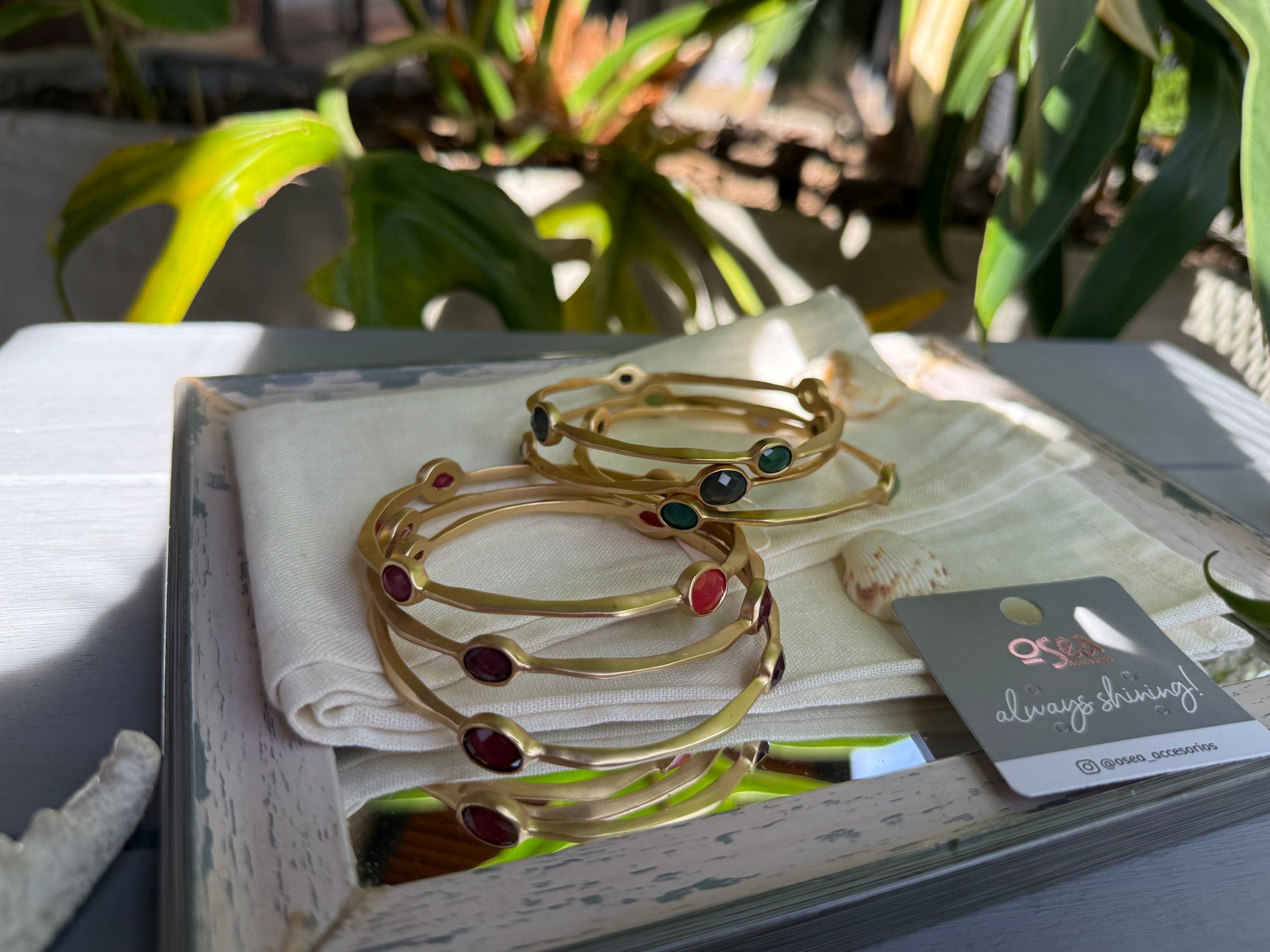 ¡Añade un toque de elegancia y estilo con este juego de pulseras! Perfectos para cualquier ocasión, estos aros delgados cuentan con hermosos detalles en piedra que te harán destacar. ¡Úsalos juntos o por separado para crear diferentes looks de moda femenina! ¡Consigue ya esta tendencia!