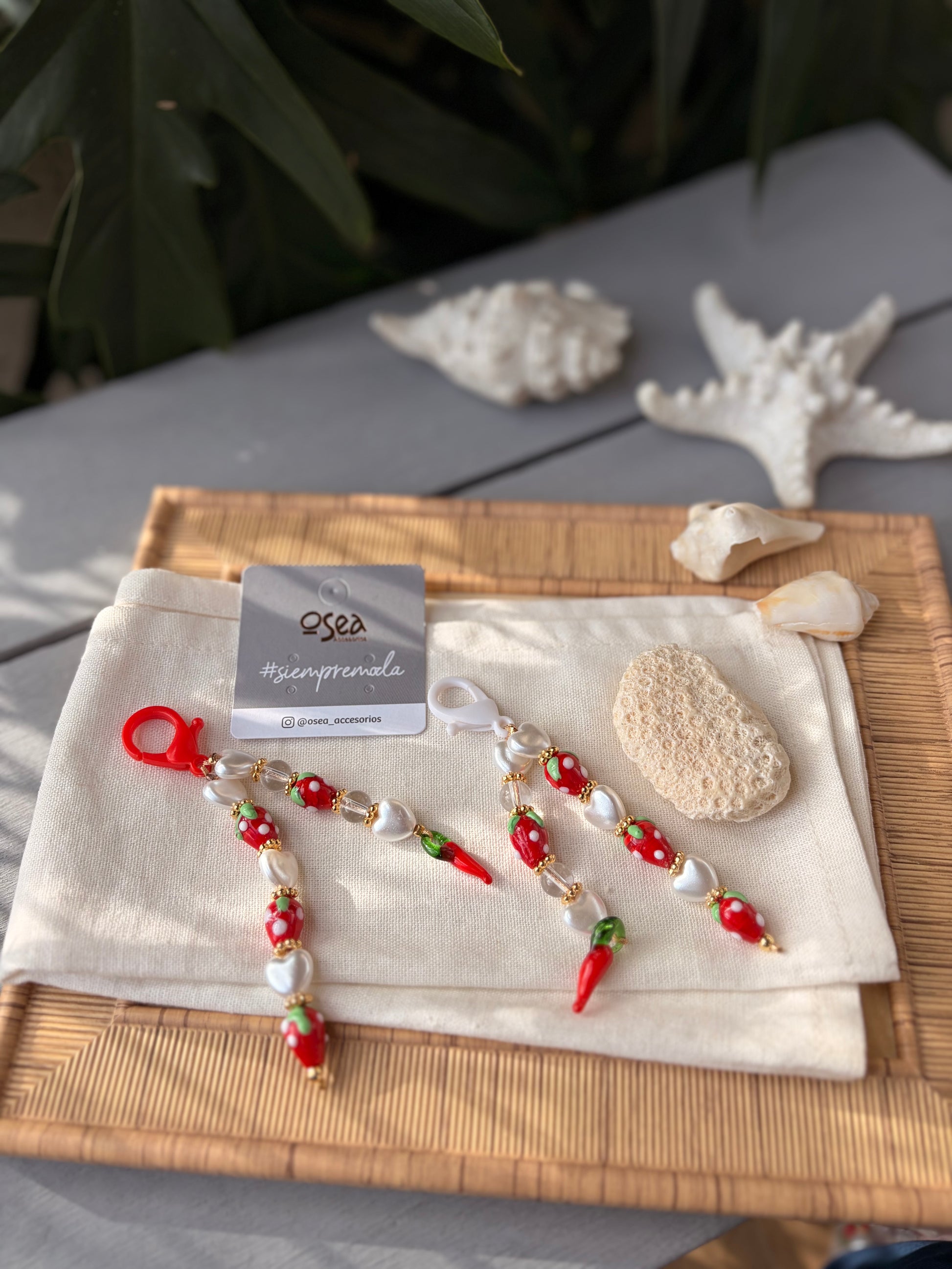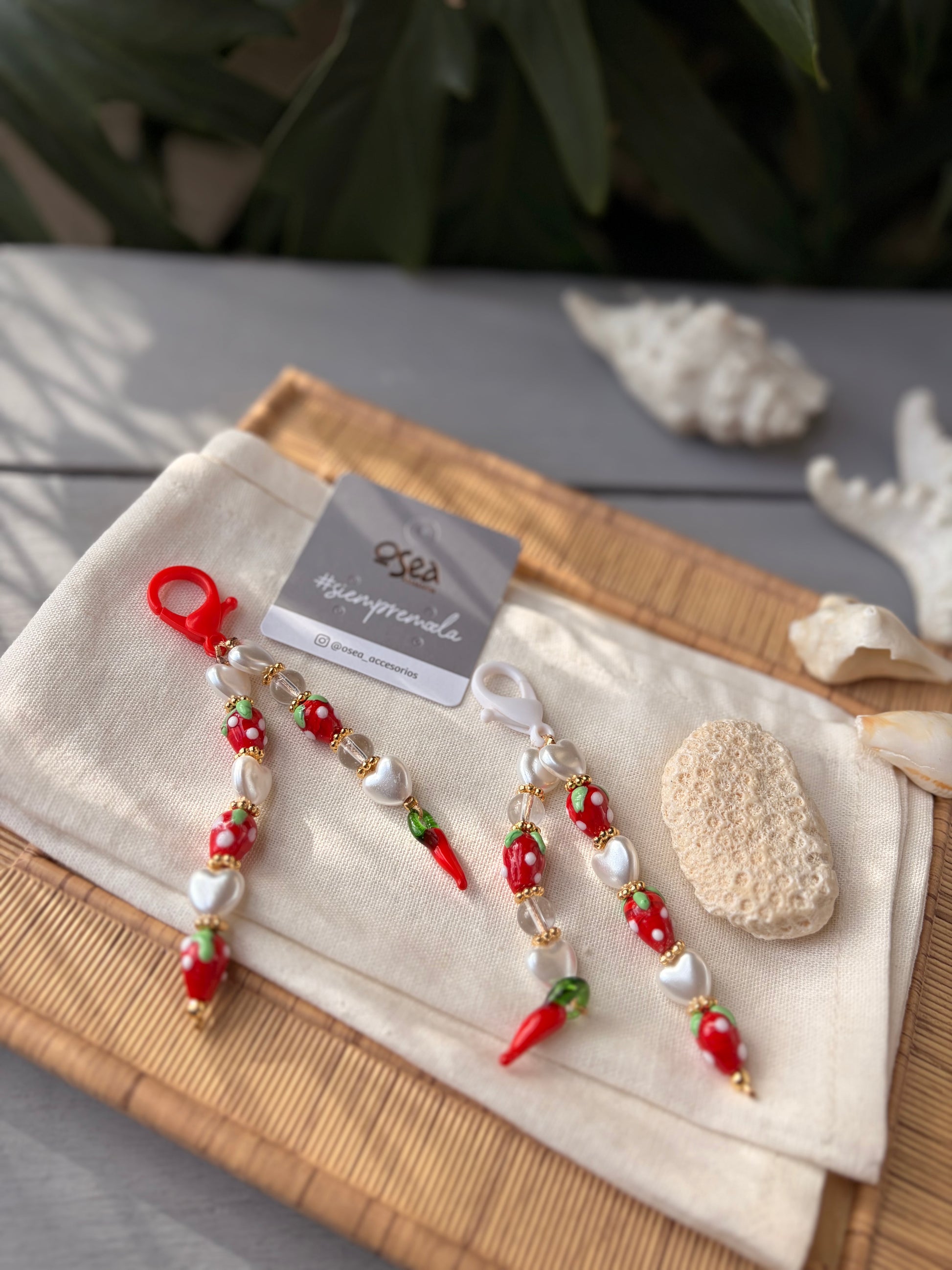 Este llavero es tan versátil que puedes usarlo para mantener tus llaves organizadas o como un accesorio único en tu celular, bolso o cartera. Con su diseño de fresas y corazones, es el mejor regalo para sorprender a tus seres queridos. ¡Haz que tu día sea más dulce con este adorable llavero!